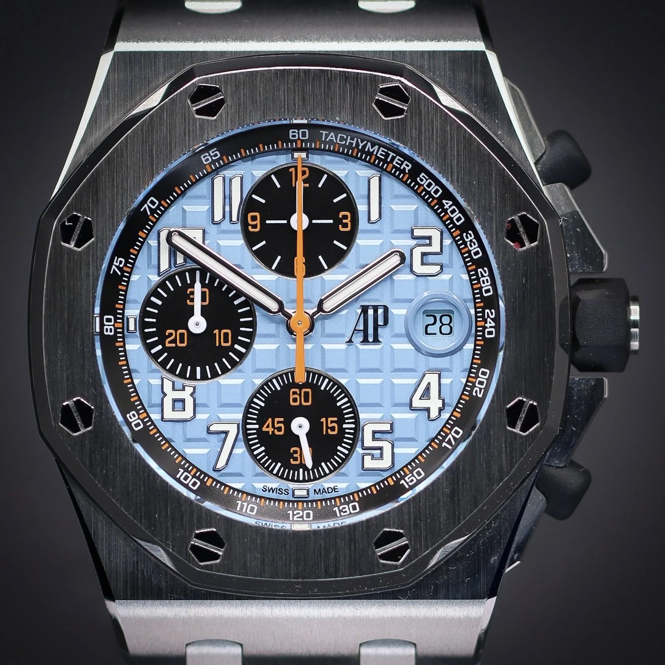 Categories: All Audemars Piguet Blancpain Breitling Cartier Chronoswiss Franck Muller Girard-Perregaux Grand Seiko H. Moser & Cie. Hublot IWC Lady's Timepieces Jaeger-LeCoultre MB&F Omega Panerai Patek Philippe Rolex Tudor Ulysse Nardin Vacheron Constantin All Audemars Piguet Blancpain Breitling Cartier Chronoswiss Franck Muller Girard-Perregaux Grand Seiko H. Moser & Cie. Hublot IWC Lady's Timepieces MB&F Omega Panerai Patek Philippe Rolex Tudor Ulysse Nardin Vacheron Constantin AUDEMARS PIGUET Royal Oak Offshore 44 “Blue Smoke” | Ref. 26405CE.OO.A030CA.01 | Full Set $43,995.00 AUDEMARS PIGUET Royal Oak Offshore Chronograph 42 “Tiffany” | Ref. 26238ST.OO.A340CA.01 | Full Set $44,995.00 PATEK PHILIPPE Nautilus 5726A-001 | Steel 40 | Charcoal Gray Dial | 2 Extra Straps | Full Set $86,995.00 AUDEMARS PIGUET Royal Oak Offshore 42 “Safari” | Ref. 26470ST.OO.A801CR.01 | Full Set $22,495.00 AUDEMARS PIGUET Royal Oak Offshore 42 “Indigo” | 26470ST.OO.A030CA.01 | Full Set $29,995.00 AUDEMARS PIGUET Royal Oak Perpetual Calendar 41 | Yellow Gold | Blue Dial | Ref. 26574BA.OO.1220BA.01 | Full Set $157,995.00 ROLEX Daytona Cosmograph “Paul Newman” | Ref. 126508 | Solid 18k Yellow Gold | Full Set $61,995.00 PANERAI Submersible QuarantaQuattro Blu Profondo 44 | Ref. PAM01289 | Complete Set with UPGRADED Bracelet $10,795.00 ROLEX Explorer II “Polar Bear” | Ref. 226570 | Complete Set $12,495.00 AUDEMARS PIGUET Royal Oak 41 | Silver Dial | Steel Bracelet | Ref. 15400ST.OO.1220ST.02 | Full Set $37,495.00 AUDEMARS PIGUET Royal Oak 41 | Silver Dial | 18k Rose Gold | Ref. 15400OR.OO.1220OR.02 | Full Set $72,495.00 ROLEX Daytona Cosmograph 40 “Ivory” | Rose Gold | Ref. 116505 | Full Unpolished Set | Partial Stickers $59,995.00 ROLEX GMT Master II “Green Arrow” 40 | DISCONTINUED Ref. 116710LN | Full Set $13,995.00 AUDEMARS PIGUET Royal Oak Chronograph 39 “Kasparov” | Ref. 25960BA.OO.1185BA.01 | Watch & Archive Extracts $64,995.00 CARTIER Santos Large | Ref. WSSA0037 | BOTH Steel & ADLC Bezels | Full Set $7,995.00 BRAND NEW AUDEMARS PIGUET Royal Oak Chronograph 41 | Silver Dial | Ref. 26240ST.OO.1320ST.07 | Full Set $55,995.00 BREITLING Navitimer B01 Chronograph 46 “Blue Panda” | Ref. AB0137211C1A1 | Full Set $6,495.00 ROLEX Oyster Perpetual Air-King 40 | Ref. 116900 | Full Set $7,995.00 AUDEMARS PIGUET Royal Oak Offshore 42 “Navy” | Ref. 26470ST.OO.A027CA.01 | Full Set $21,995.00 AUDEMARS PIGUET Royal Oak 41 | Rhodium Dial | Steel Bracelet | Ref. 15400ST.OO.1220ST.04 | Full Set $39,795.00 ROLEX Sea-Dweller “Red Line” 43 | Ref. 126600 | Black Dial | Ceramic | Full Set $14,995.00 BREITLING Chronomat B01 42 “Silver Panda” | Ref. AB0134101G1A1 | Full Set with Extra Strap $5,795.00 OMEGA Seamaster Diver 300m “Commander’s Watch” | Ref. 212.32.41.20.04.001 | Full Collector’s Set $6,495.00 ROLEX **Brand New* Datejust 41mm | Azzurro Roman | Ref. 126300 | Full Set $12,795.00 Needs Procurement BREITLING Navitimer B01 Chronograph 41 | White Dial | Ref. AB0139A71G1A1 | EXTENDED WARRANTY | Full Set $6,995.00 AUDEMARS PIGUET Royal Oak Offshore Chronograph 42 “BRICK” | Black Dial | Rose Gold | Ref. 26470OR.OO.1000OR.03 | Full Set $72,495.00 BREITLING Navitimer 1 B01 Chronograph 43 “Ice Blue” | Ref. AB0138241C1A1 | Full Set $6,995.00 Needs Procurement PATEK PHILIPPE Annual Calendar Moonphase “Soleil Vert” | Rose Gold | Ref. 5205R-011 | Full Set $62,995.00 Needs Procurement BREITLING SuperOcean 44 | Bronze | Blue Dial | Ref. N173761A1C1S1 | Full Set $4,495.00 AUDEMARS PIGUET Royal Oak 41 | Silver (White) Dial | Ref. 15510ST.OO.1320ST.08 | Full Set $41,995.00 Needs Procurement ROLEX Skydweller 42 on Oysterflex | Ref. 336238 | Yellow Gold | White Dial | Full Set $39,995.00 PANERAI Luminor Marina 44 “Tre Giorni” | Ref. PAM01313 | Blue Dial | Compete Set $5,695.00 AUDEMARS PIGUET Royal Oak Offshore “Blue Camo” 44mm, Ref. 26400SO.OO.A335CA.01, Complete Set with Extra Strap. Limited Edition! $36,495.00 AUDEMARS PIGUET Royal Oak Offshore 42 | White Gold & Ceramic | Ref. 15720CN.OO.A002CA.01 | Full Set $37,995.00 AUDEMARS PIGUET Royal Oak Offshore Diver 44 | Slate Gray | Ref. 15720ST.OO.A009CA.01 | Full Set $28,995.00 ROLEX Cosmograph Daytona 40 | Rose Gold Dial | Ceramic | Ref. 116515LN | Full Set $43,495.00 ROLEX GMT Master II 40 “Green Arrow” | Ref. 116713LN | Yellow Gold & Steel | DISCONTINUED | Full Set $15,995.00 ROLEX Datejust 36 | Palm Motif | Diamond Markers | Ref. 126233 | DISCONTINUED | Full Set $19,995.00 ROLEX Yacht-Master II 44 | Ref. 116680 | Stainless Steel | Watch, Box, & Booklets $15,495.00 Needs Procurement ROLEX Cosmograph Daytona 40 | Rose Gold | Black Dial | Ceramic | Ref. 116515LN | Full Set $42,995.00 PANERAI Luminor Marina Quaranta Verde Militare 40 | Limited Edition | Ref. PAM01304 | Full Set with 5 STRAPS $6,995.00 ROLEX Datejust 41 | Mother-of-Pearl | Diamond Markers | Ref. 126333 | Full Set $17,995.00 Needs Procurement VACHERON CONSTANTIN Overseas Tourbillon | Ref. 6000V/110A-B544 | Complete Set $84,995.00 Needs Procurement ROLEX GMT Master II “Root Beer” | Rose Gold | Ref. 126715CHNR | Full Set $39,495.00 PANERAI Radiomir Otto Giorni 45 | Ref. PAM01348 | Limited Edition Boutique Exclusive | Full Set $7,295.00 Audemars Piguet Royal Oak Offshore Chrono “Green Camo” 44, Ref. 26400SO, Complete Set with Extra Strap. Limited Edition of 400 pieces $32,995.00 AUDEMARS PIGUET Royal Oak Offshore “BEAST,” Ref. 26237ST.OO.1000ST.01, Complete Set $32,995.00 OMEGA Seamaster Diver 300m 44 | Blue Dial | Ref. 210.30.44.51.03.001 | Full Set $6,195.00 OMEGA Speedmaster Racing Co-Axial Master Chronometer Chronograph 44.25 | Ref. 329.30.44.51.01.002 | Full Set $5,995.00 ROLEX Oyster Perpetual Air-King 40 | Ref. 126900 | Complete Set $8,495.00 Needs Procurement BREITLING Navitimer 1 B01 Chronograph 43 | “Silver Panda” | Ref. AB0138241G1A1 | Full Set $6,895.00 AUDEMARS PIGUET Royal Oak Chronograph 41 Steel | Silver Dial | Ref. 263