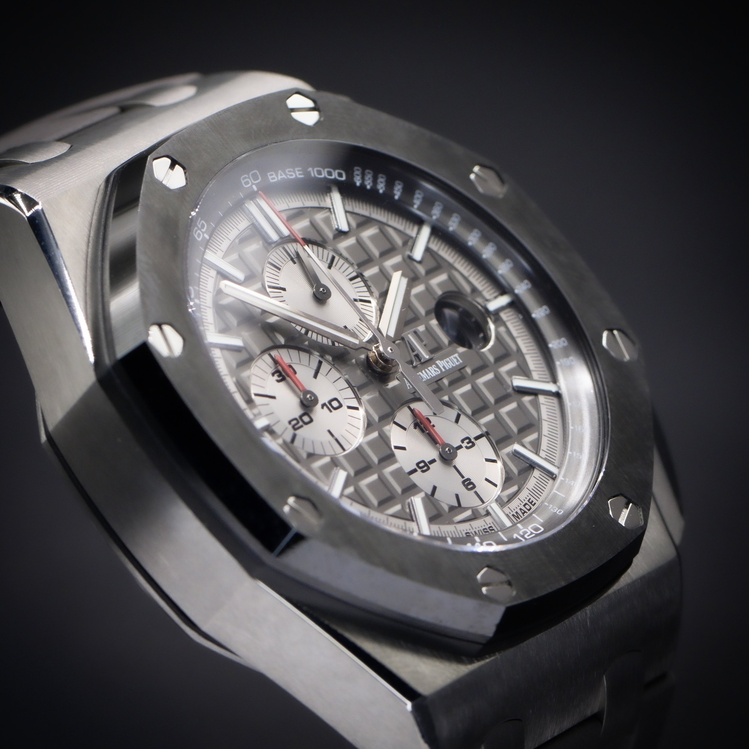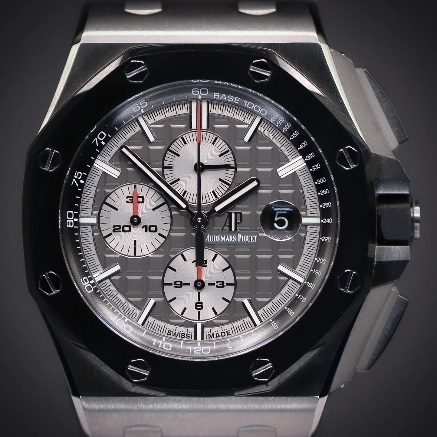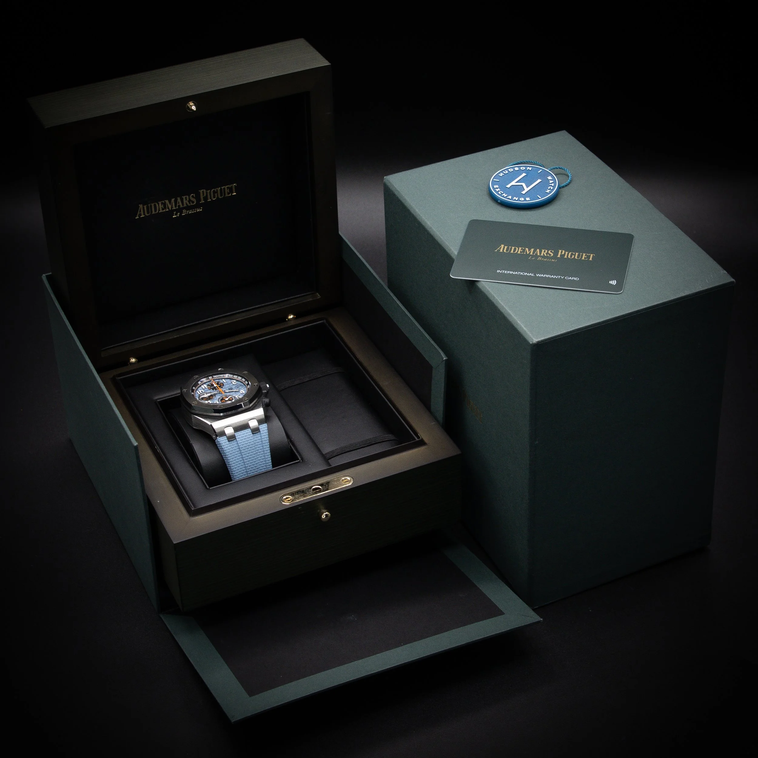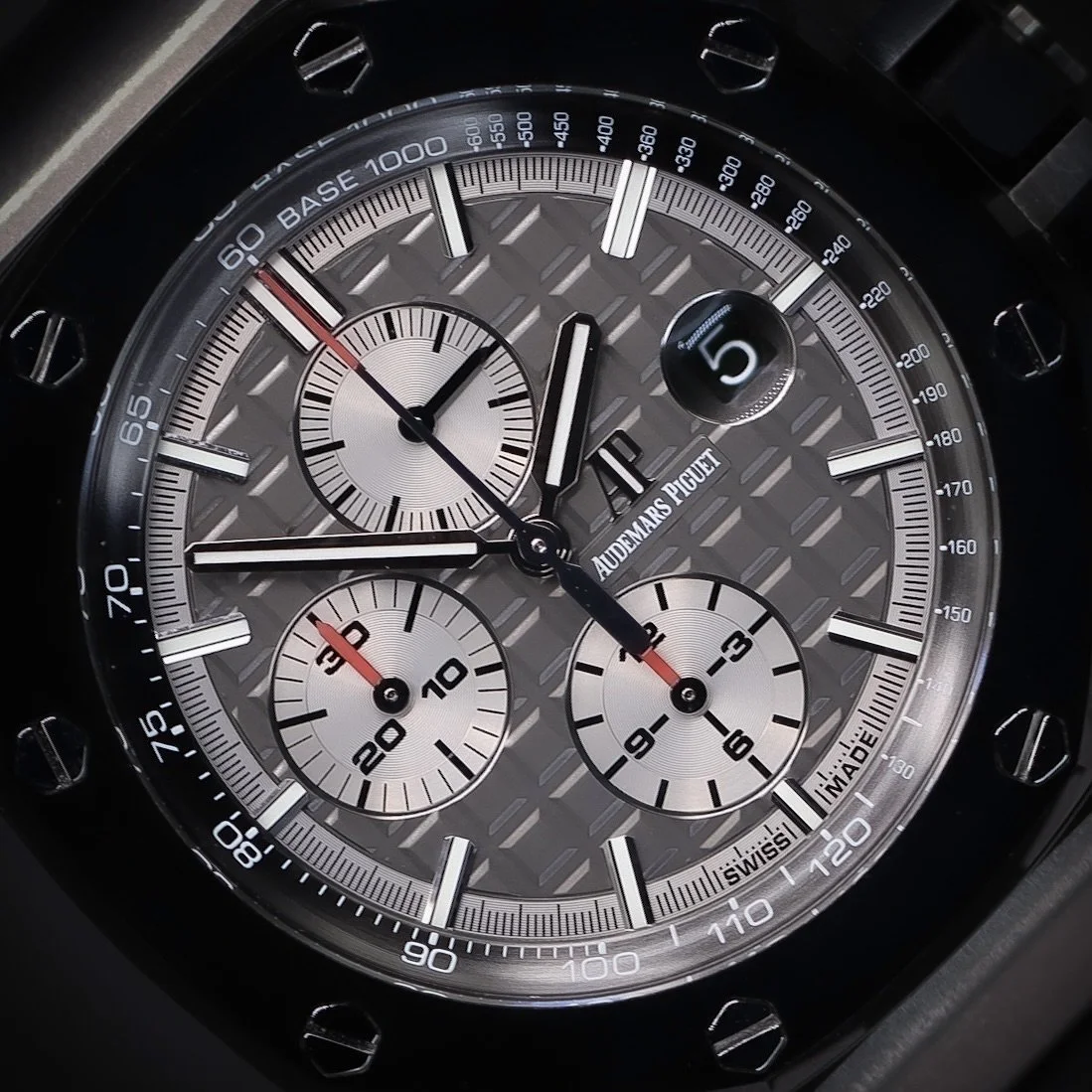 Audemars Piguet Categories: All Audemars Piguet Blancpain Breitling Cartier Chopard Chronoswiss Grand Seiko Franck Muller Girard-Perregaux H. Moser & Cie. Hublot IWC Jaeger-LeCoultre Lady's Timepieces MB&F Omega Panerai Patek Philippe Rolex Thomas Ninchritz Tudor Ulysse Nardin Vacheron Constantin All / All Audemars Piguet Blancpain Breitling Cartier Chopard Chronoswiss Grand Seiko Franck Muller Girard-Perregaux H. Moser & Cie. Hublot IWC Jaeger-LeCoultre Lady's Timepieces MB&F Omega Panerai Patek Philippe Rolex Thomas Ninchritz Tudor Ulysse Nardin Vacheron Constantin AUDEMARS PIGUET Royal Oak Offshore 44 | Grey Panda |Ceramic | Ref. 26400IO.OO.A004CA.01 | Full Set $23,995.00 Available Upon Request AUDEMARS PIGUET Royal Oak Offshore “Safari” | Ref. 26170ST.OO.D091CR.01 | Watch, COA, Appraisal $17,995.00 AUDEMARS PIGUET Royal Oak 41 | Rhodium Dial | Steel Bracelet | Ref. 15400ST.OO.1220ST.04 | Full Set $38,495.00 BRAND NEW AUDEMARS PIGUET Royal Oak Chronograph 41 | Silver Dial | Ref. 26240ST.OO.1320ST.07 | Full Set $55,995.00 AUDEMARS PIGUET Royal Oak 41 | Silver Dial | 18k Rose Gold | Ref. 15400OR.OO.1220OR.02 | Full Set $72,495.00 AUDEMARS PIGUET Royal Oak 41 | Silver Dial | Steel Bracelet | Ref. 15400ST.OO.1220ST.02 | Full Set $37,495.00 AUDEMARS PIGUET Royal Oak Chronograph 39 “Kasparov” | Ref. 25960BA.OO.1185BA.01 | Watch & Archive Extracts $62,995.00 AUDEMARS PIGUET Royal Oak Perpetual Calendar 41 | Yellow Gold | Blue Dial | Ref. 26574BA.OO.1220BA.01 | Full Set $157,995.00 AUDEMARS PIGUET Royal Oak Offshore 42 “Indigo” | 26470ST.OO.A030CA.01 | Full Set $29,995.00 AUDEMARS PIGUET Royal Oak Offshore 42 “Safari” | Ref. 26470ST.OO.A801CR.01 | Full Set $21,495.00 AUDEMARS PIGUET Royal Oak Offshore 44 “Blue Smoke” | Ref. 26405CE.OO.A030CA.01 | Full Set $42,995.00 AUDEMARS PIGUET Star Wheel "Code 11.59" 41mm, Blue Aventurine Dial, Wandering Hours, Ref. 15212NB.OO.A002KB.01, Full Set $64,995.00 AUDEMARS PIGUET Royal Oak Offshore 42 | White Gold & Ceramic | Ref. 15720CN.OO.A002CA.01 | Full Set $36,995.00 AUDEMARS PIGUET Royal Oak Offshore Chronograph 42 “Tiffany” | Ref. 26238ST.OO.A340CA.01 | Full Set $45,995.00 Available Upon Request AUDEMARS PIGUET Royal Oak Offshore 42 “Navy” | Ref. 26470ST.OO.A027CA.01 | Full Set $21,995.00 AUDEMARS PIGUET Royal Oak Offshore Chronograph 42 “BRICK” | Black Dial | Rose Gold | Ref. 26470OR.OO.1000OR.03 | Full Set $71,995.00 AUDEMARS PIGUET Royal Oak Offshore Chronograph 44 “Gold Hands” | Black Ceramic | Ref. 26405CE.OO.A002CA.02 | Full Set $28,995.00 AUDEMARS PIGUET Royal Oak 41 | Silver (White) Dial | Ref. 15510ST.OO.1320ST.08 | Full Set $45,495.00 Available Upon Request AUDEMARS PIGUET Royal Oak Offshore “Blue Camo” 44mm, Ref. 26400SO.OO.A335CA.01, Complete Set with Extra Strap. Limited Edition! $36,495.00 AUDEMARS PIGUET Royal Oak Offshore Diver 44 | Slate Gray | Ref. 15720ST.OO.A009CA.01 | Full Set $28,995.00 AUDEMARS PIGUET Royal Oak Offshore “BEAST,” Ref. 26237ST.OO.1000ST.01, Complete Set $32,995.00 Available Upon Request AUDEMARS PIGUET Royal Oak Chronograph 41 Steel | Silver Dial | Ref. 26320ST.OO.1220ST.02 | Full Set $37,995.00 Available Upon Request AUDEMARS PIGUET Royal Oak Offshore Green “Khaki” Diver 42 | Ref. 15720ST | Full Set $28,495.00 Available Upon Request AUDEMARS PIGUET Royal Oak Offshore 43mm, Ceramic, Blue Dial, Ref. 26420CE.OO.A043VE.01, Full Set $52,995.00 Available Upon Request AUDEMARS PIGUET Royal Oak Chronograph “PANDA” 41, Silver & Black Dial, Ref. 26331ST.OO.1220SST.03, Full Set $43,995.00 Available Upon Request AUDEMARS PIGUET Code 11.59 41mm, “Purple Smoke” Dial, Rose Gold, Ref. 263930R.00.A616CR.01, Full Set Sale Price: $37,995.00 Original Price: $39,995.00 Available Upon Request AUDEMARS PIGUET Royal Oak Offshore Chronograph 44mm, Rose Gold & Ceramic “Reverse Panda”, Ref. 26401RO.OO.A002CA.01, Full Set $35,995.00 Available Upon Request Audemars Piguet Royal Oak Offshore Selfwinding 43 “Blue Smoke” | Ref. 15605SK | Full set $40,995.00 Available Upon Request AUDEMARS PIGUET Royal Oak Offshore 42 “Havana” | Ref. 26470ST.OO.A099CR.01 | Full Set $24,995.00 AUDEMARS PIGUET Royal Oak Offshore Chronograph 42 “Vampire,” Ref. 26470ST.OO.A101CR.01, Complete Set, BOTH Bezels $24,995.00 Jules Audemars Titanium “6th Day” Schwarzenegger, Limited to 50 Pieces, Ref. 25949IP.O.0001KE.01, Box & 2022 Service Papers $20,995.00 Available Upon Request AUDEMARS PIGUET Royal Oak Selfwinding 41 in Rose Gold, Silver Dial, Ref. 15400OR.OO.D088CR.01, Navy Rubber Strap, 18K Rose Gold “Homage” Bracelet, Full Set $53,995.00 AUDEMARS PIGUET Royal Oak Offshore Chronograph 43mm, Grey Dial, Leather Strap, Ref. 26420OI.OO.A015VE.01, Full Set $60,995.00 *BRAND NEW* Audemars Piguet Royal Oak 41mm, Rose Gold, Black Dial, Ref. 26240OR.OO.1320OR.02, Complete Set $69,995.00 Available Upon Request AUDEMARS PIGUET Royal Oak Offshore Diver “Funky Colors,” Ref. 15710ST.OO.A027CA.01, Complete Set with Extra StraP $21,495.00 AUDEMARS PIGUET Royal Oak Offshore Chronograph 42 “Vampire,” Ref. 26470ST.OO.A101CR.01, Complete Set $23,495.00 AUDEMARS PIGUET Royal Oak “JUMBO” 39, Rose Gold, Black Dial, Leather Strap Ref. 15300OR.OO.D002CR.01, Box, 2023 Service Papers, Archive Extracts $31,995.00 Available Upon Request Audemars Piguet Royal Oak Offshore Chrono “Green Camo” 44, Ref. 26400SO, Complete Set with Extra Strap. Limited Edition of 400 pieces $32,995.00 AUDEMARS PIGUET Royal Oak Offshore Chronograph 42mm “Half Brick”, Black Dial, Ref. 26470OR.OO.A002CR.02, Full Set $46,995.00 Available Upon Request AUDEMARS PIGUET Royal Oak Offshore 42 “Ghost,” Ref. 26470IO.OO.A006CA.01, Full Set $26,995.00 Available Upon Request AUDEMARS PIGUET Royal Oak Offshore "HALF BRICK", Rose Gold, Rhodium Dial, Ref. 26470OR.OO.A125CR.01, Complete Set with Extra Strap $39,995.00 Available Upon Request AUDEMARS PIGUET Royal Oak Offshore Self-Winding 37, “Music” Limited Edition of 500 Pieces, R