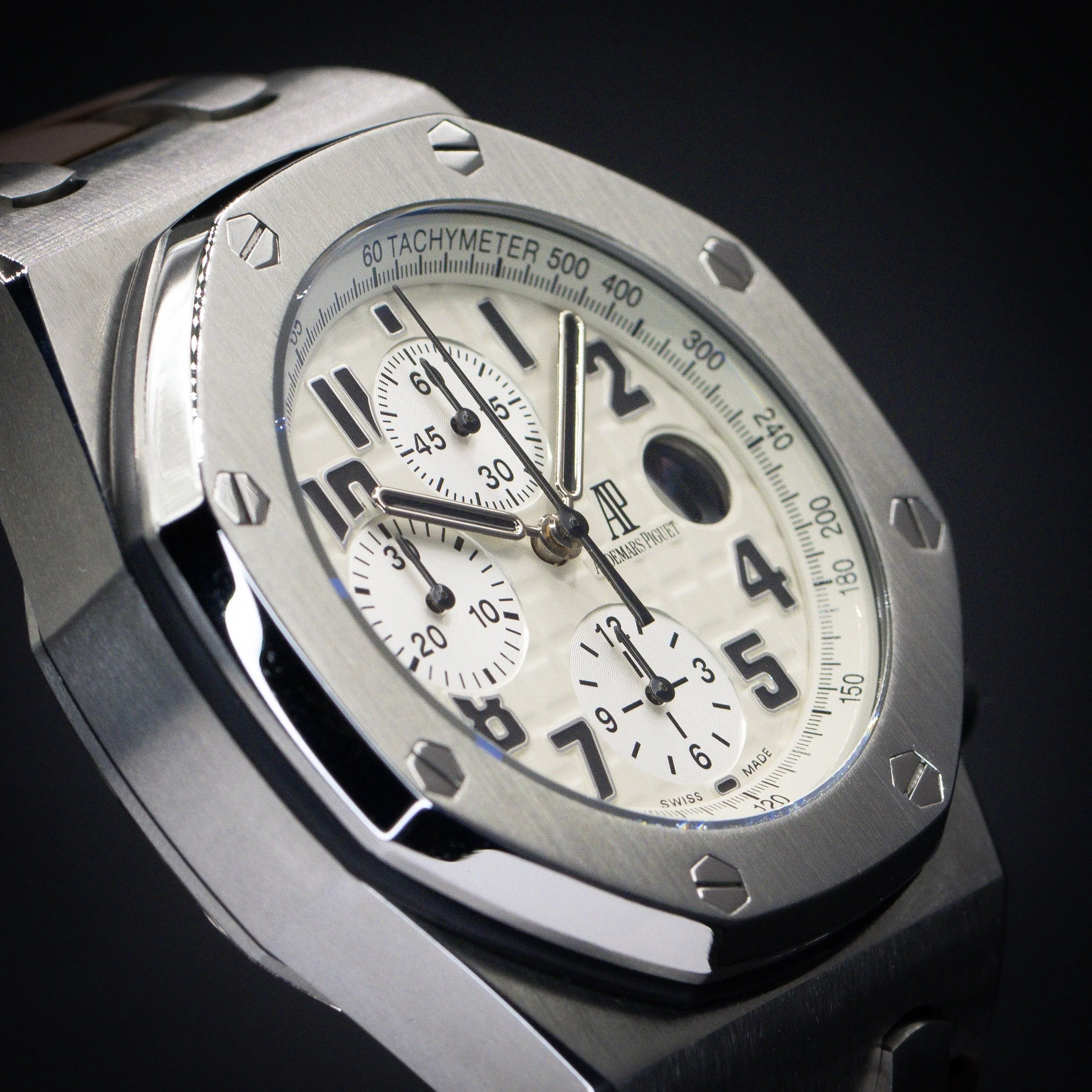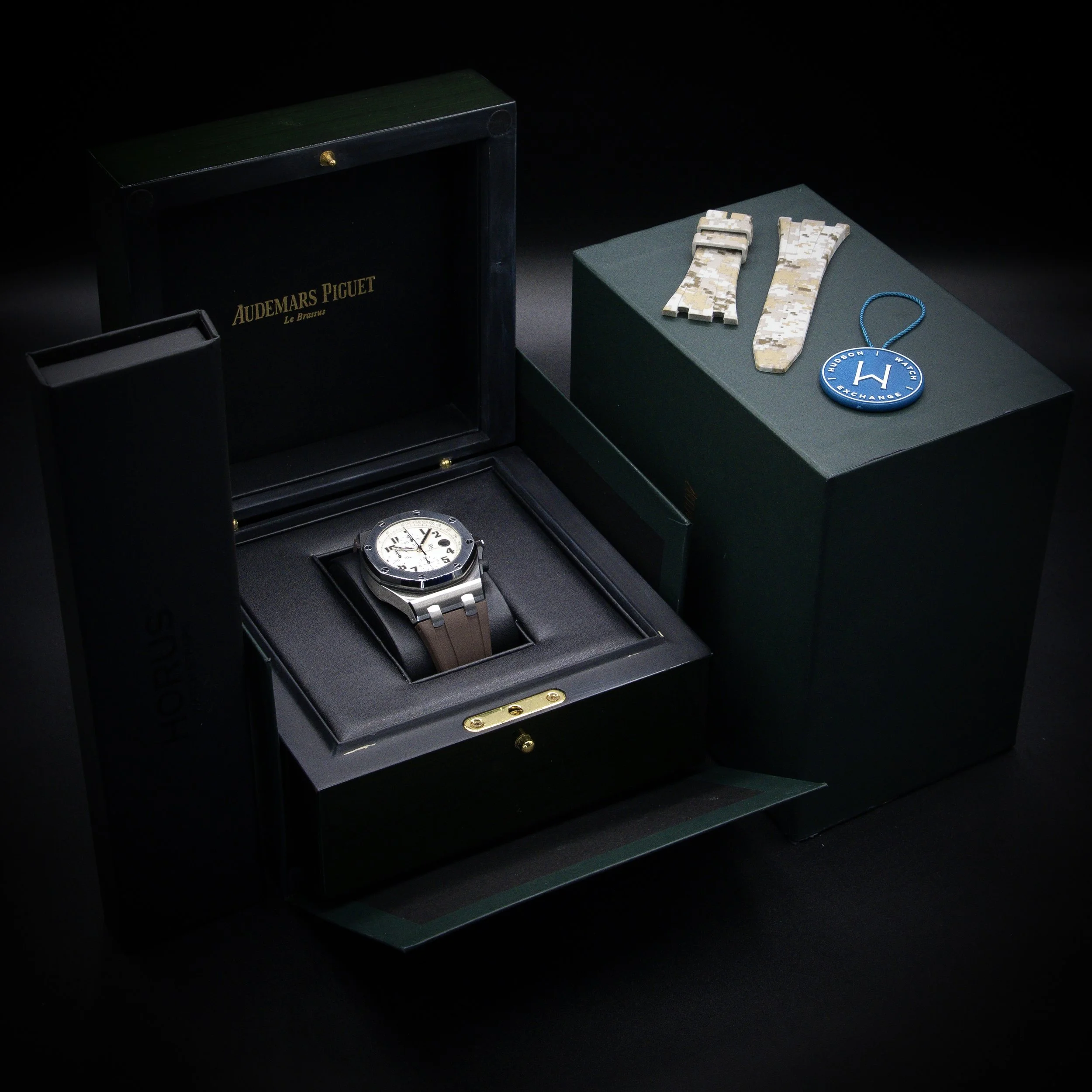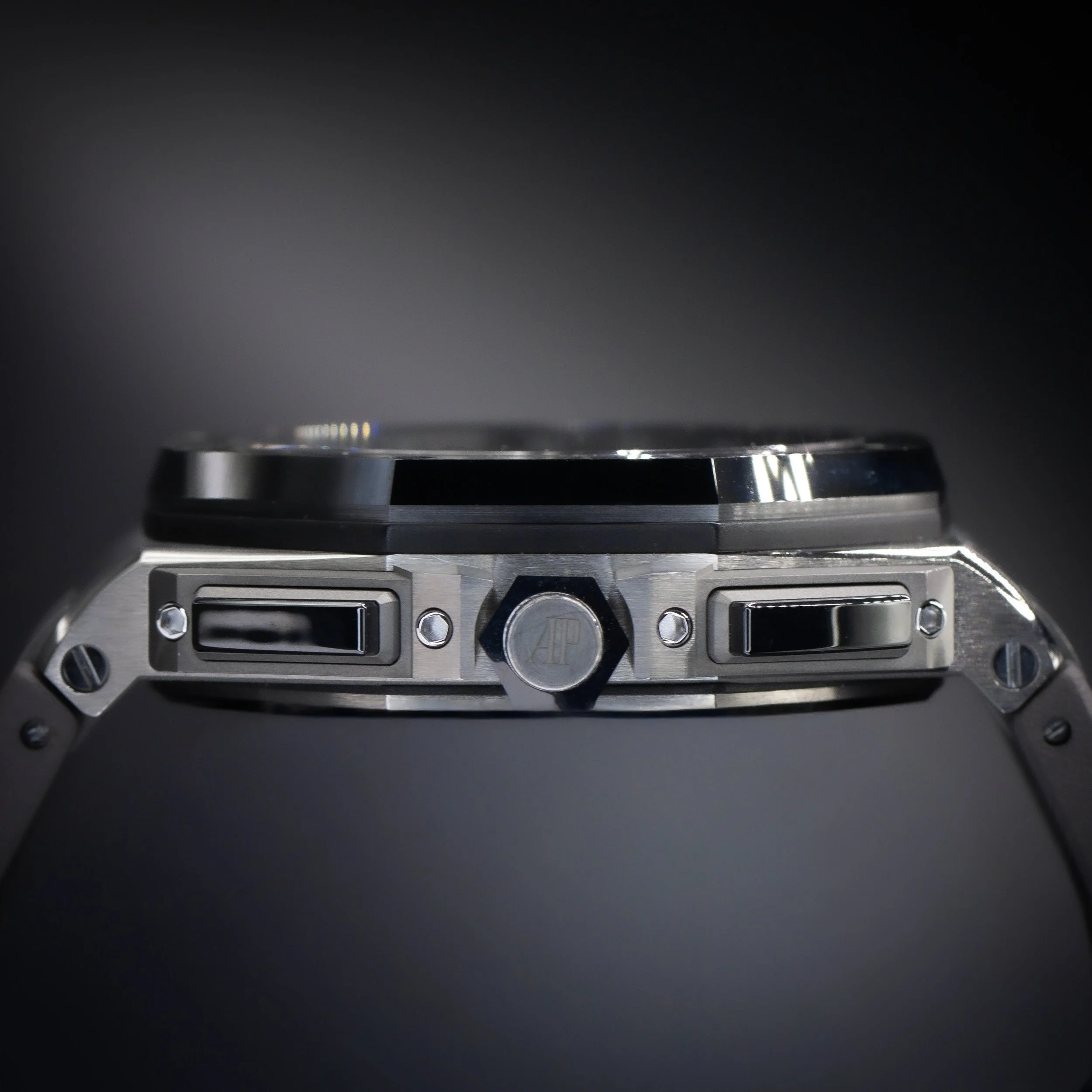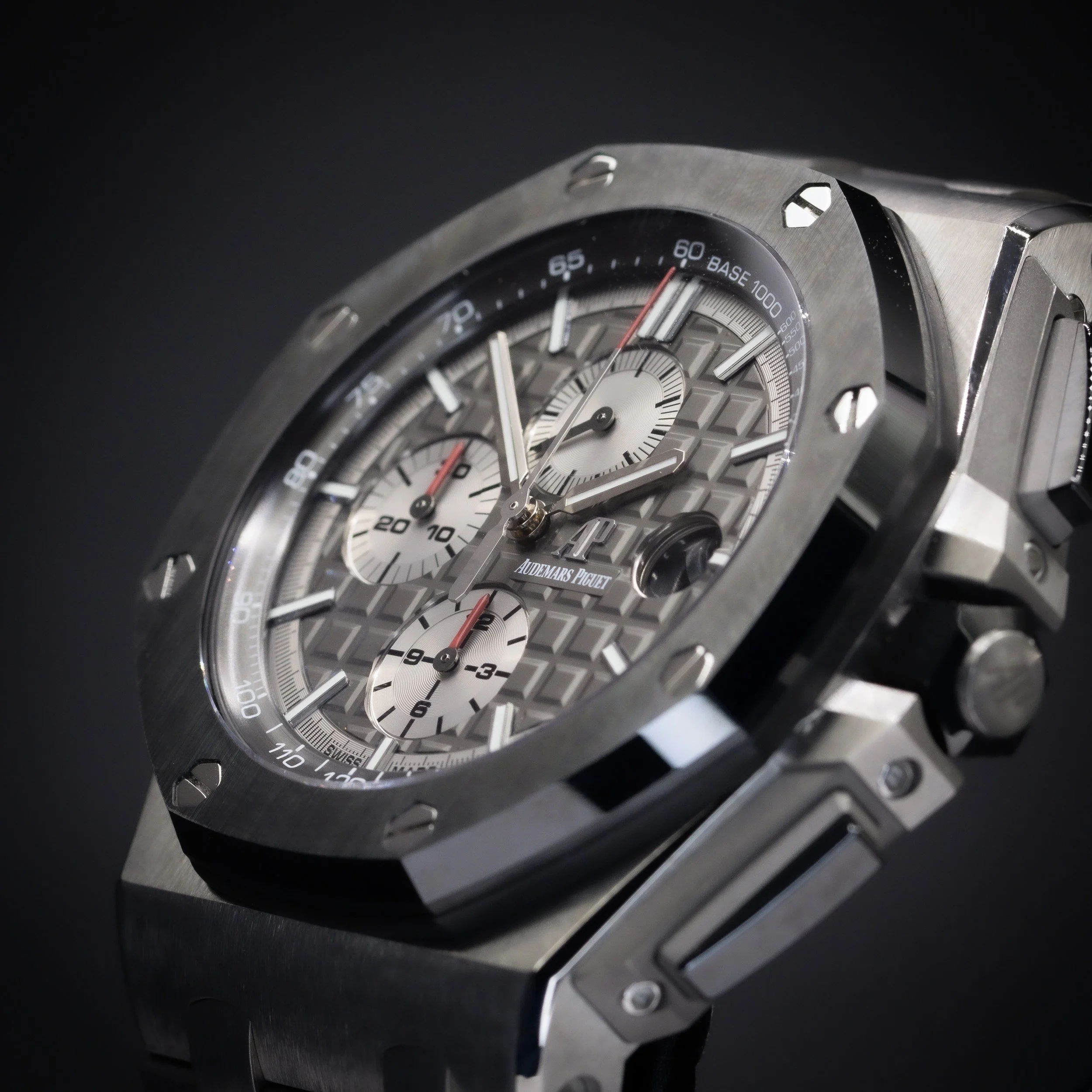 Audemars Piguet Categories: All Audemars Piguet Blancpain Breitling Cartier Chopard Chronoswiss Grand Seiko Franck Muller Girard-Perregaux H. Moser & Cie. Hublot IWC Jaeger-LeCoultre Lady's Timepieces MB&F Omega Panerai Patek Philippe Rolex Thomas Ninchritz Tudor Ulysse Nardin Vacheron Constantin All / All Audemars Piguet Blancpain Breitling Cartier Chopard Chronoswiss Grand Seiko Franck Muller Girard-Perregaux H. Moser & Cie. Hublot IWC Jaeger-LeCoultre Lady's Timepieces MB&F Omega Panerai Patek Philippe Rolex Thomas Ninchritz Tudor Ulysse Nardin Vacheron Constantin AUDEMARS PIGUET Royal Oak Offshore 44 | Grey Panda |Ceramic | Ref. 26400IO.OO.A004CA.01 | Full Set $23,995.00 Available Upon Request AUDEMARS PIGUET Royal Oak Offshore “Safari” | Ref. 26170ST.OO.D091CR.01 | Watch, COA, Appraisal $17,995.00 AUDEMARS PIGUET Royal Oak 41 | Rhodium Dial | Steel Bracelet | Ref. 15400ST.OO.1220ST.04 | Full Set $38,495.00 BRAND NEW AUDEMARS PIGUET Royal Oak Chronograph 41 | Silver Dial | Ref. 26240ST.OO.1320ST.07 | Full Set $55,995.00 AUDEMARS PIGUET Royal Oak 41 | Silver Dial | 18k Rose Gold | Ref. 15400OR.OO.1220OR.02 | Full Set $72,495.00 AUDEMARS PIGUET Royal Oak 41 | Silver Dial | Steel Bracelet | Ref. 15400ST.OO.1220ST.02 | Full Set $37,495.00 AUDEMARS PIGUET Royal Oak Chronograph 39 “Kasparov” | Ref. 25960BA.OO.1185BA.01 | Watch & Archive Extracts $62,995.00 AUDEMARS PIGUET Royal Oak Perpetual Calendar 41 | Yellow Gold | Blue Dial | Ref. 26574BA.OO.1220BA.01 | Full Set $157,995.00 AUDEMARS PIGUET Royal Oak Offshore 42 “Indigo” | 26470ST.OO.A030CA.01 | Full Set $29,995.00 AUDEMARS PIGUET Royal Oak Offshore 42 “Safari” | Ref. 26470ST.OO.A801CR.01 | Full Set $21,495.00 AUDEMARS PIGUET Royal Oak Offshore 44 “Blue Smoke” | Ref. 26405CE.OO.A030CA.01 | Full Set $42,995.00 AUDEMARS PIGUET Star Wheel "Code 11.59" 41mm, Blue Aventurine Dial, Wandering Hours, Ref. 15212NB.OO.A002KB.01, Full Set $64,995.00 AUDEMARS PIGUET Royal Oak Offshore 42 | White Gold & Ceramic | Ref. 15720CN.OO.A002CA.01 | Full Set $36,995.00 AUDEMARS PIGUET Royal Oak Offshore Chronograph 42 “Tiffany” | Ref. 26238ST.OO.A340CA.01 | Full Set $45,995.00 Available Upon Request AUDEMARS PIGUET Royal Oak Offshore 42 “Navy” | Ref. 26470ST.OO.A027CA.01 | Full Set $21,995.00 AUDEMARS PIGUET Royal Oak Offshore Chronograph 42 “BRICK” | Black Dial | Rose Gold | Ref. 26470OR.OO.1000OR.03 | Full Set $71,995.00 AUDEMARS PIGUET Royal Oak Offshore Chronograph 44 “Gold Hands” | Black Ceramic | Ref. 26405CE.OO.A002CA.02 | Full Set $28,995.00 AUDEMARS PIGUET Royal Oak 41 | Silver (White) Dial | Ref. 15510ST.OO.1320ST.08 | Full Set $45,495.00 Available Upon Request AUDEMARS PIGUET Royal Oak Offshore “Blue Camo” 44mm, Ref. 26400SO.OO.A335CA.01, Complete Set with Extra Strap. Limited Edition! $36,495.00 AUDEMARS PIGUET Royal Oak Offshore Diver 44 | Slate Gray | Ref. 15720ST.OO.A009CA.01 | Full Set $28,995.00 AUDEMARS PIGUET Royal Oak Offshore “BEAST,” Ref. 26237ST.OO.1000ST.01, Complete Set $32,995.00 Available Upon Request AUDEMARS PIGUET Royal Oak Chronograph 41 Steel | Silver Dial | Ref. 26320ST.OO.1220ST.02 | Full Set $37,995.00 Available Upon Request AUDEMARS PIGUET Royal Oak Offshore Green “Khaki” Diver 42 | Ref. 15720ST | Full Set $28,495.00 Available Upon Request AUDEMARS PIGUET Royal Oak Offshore 43mm, Ceramic, Blue Dial, Ref. 26420CE.OO.A043VE.01, Full Set $52,995.00 Available Upon Request AUDEMARS PIGUET Royal Oak Chronograph “PANDA” 41, Silver & Black Dial, Ref. 26331ST.OO.1220SST.03, Full Set $43,995.00 Available Upon Request AUDEMARS PIGUET Code 11.59 41mm, “Purple Smoke” Dial, Rose Gold, Ref. 263930R.00.A616CR.01, Full Set Sale Price: $37,995.00 Original Price: $39,995.00 Available Upon Request AUDEMARS PIGUET Royal Oak Offshore Chronograph 44mm, Rose Gold & Ceramic “Reverse Panda”, Ref. 26401RO.OO.A002CA.01, Full Set $35,995.00 Available Upon Request Audemars Piguet Royal Oak Offshore Selfwinding 43 “Blue Smoke” | Ref. 15605SK | Full set $40,995.00 Available Upon Request AUDEMARS PIGUET Royal Oak Offshore 42 “Havana” | Ref. 26470ST.OO.A099CR.01 | Full Set $24,995.00 AUDEMARS PIGUET Royal Oak Offshore Chronograph 42 “Vampire,” Ref. 26470ST.OO.A101CR.01, Complete Set, BOTH Bezels $24,995.00 Jules Audemars Titanium “6th Day” Schwarzenegger, Limited to 50 Pieces, Ref. 25949IP.O.0001KE.01, Box & 2022 Service Papers $20,995.00 Available Upon Request AUDEMARS PIGUET Royal Oak Selfwinding 41 in Rose Gold, Silver Dial, Ref. 15400OR.OO.D088CR.01, Navy Rubber Strap, 18K Rose Gold “Homage” Bracelet, Full Set $53,995.00 AUDEMARS PIGUET Royal Oak Offshore Chronograph 43mm, Grey Dial, Leather Strap, Ref. 26420OI.OO.A015VE.01, Full Set $60,995.00 *BRAND NEW* Audemars Piguet Royal Oak 41mm, Rose Gold, Black Dial, Ref. 26240OR.OO.1320OR.02, Complete Set $69,995.00 Available Upon Request AUDEMARS PIGUET Royal Oak Offshore Diver “Funky Colors,” Ref. 15710ST.OO.A027CA.01, Complete Set with Extra StraP $21,495.00 AUDEMARS PIGUET Royal Oak Offshore Chronograph 42 “Vampire,” Ref. 26470ST.OO.A101CR.01, Complete Set $23,495.00 AUDEMARS PIGUET Royal Oak “JUMBO” 39, Rose Gold, Black Dial, Leather Strap Ref. 15300OR.OO.D002CR.01, Box, 2023 Service Papers, Archive Extracts $31,995.00 Available Upon Request Audemars Piguet Royal Oak Offshore Chrono “Green Camo” 44, Ref. 26400SO, Complete Set with Extra Strap. Limited Edition of 400 pieces $32,995.00 AUDEMARS PIGUET Royal Oak Offshore Chronograph 42mm “Half Brick”, Black Dial, Ref. 26470OR.OO.A002CR.02, Full Set $46,995.00 Available Upon Request AUDEMARS PIGUET Royal Oak Offshore 42 “Ghost,” Ref. 26470IO.OO.A006CA.01, Full Set $26,995.00 Available Upon Request AUDEMARS PIGUET Royal Oak Offshore "HALF BRICK", Rose Gold, Rhodium Dial, Ref. 26470OR.OO.A125CR.01, Complete Set with Extra Strap $39,995.00 Available Upon Request AUDEMARS PIGUET Royal Oak Offshore Self-Winding 37, “Music” Limited Edition of 500 Pieces, R