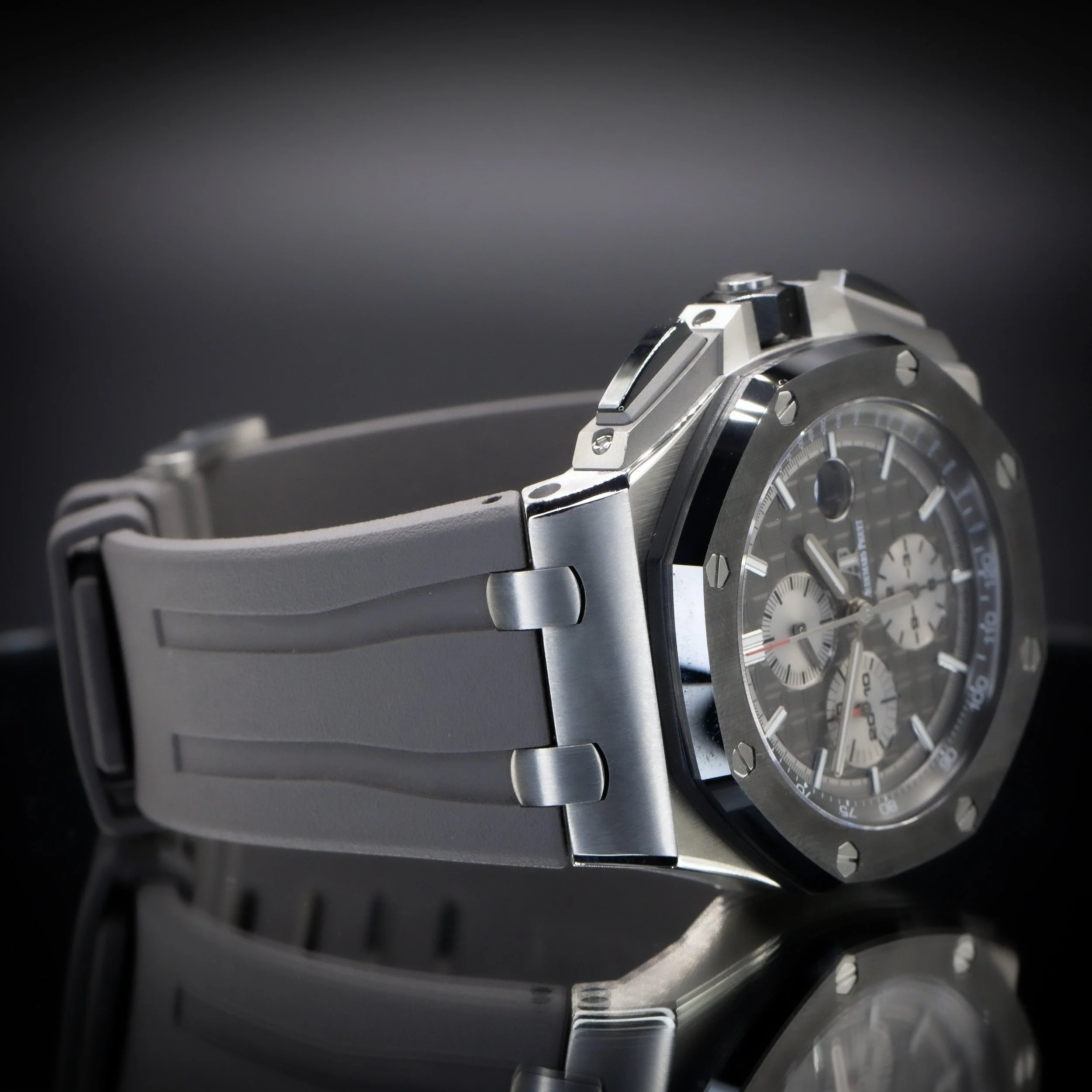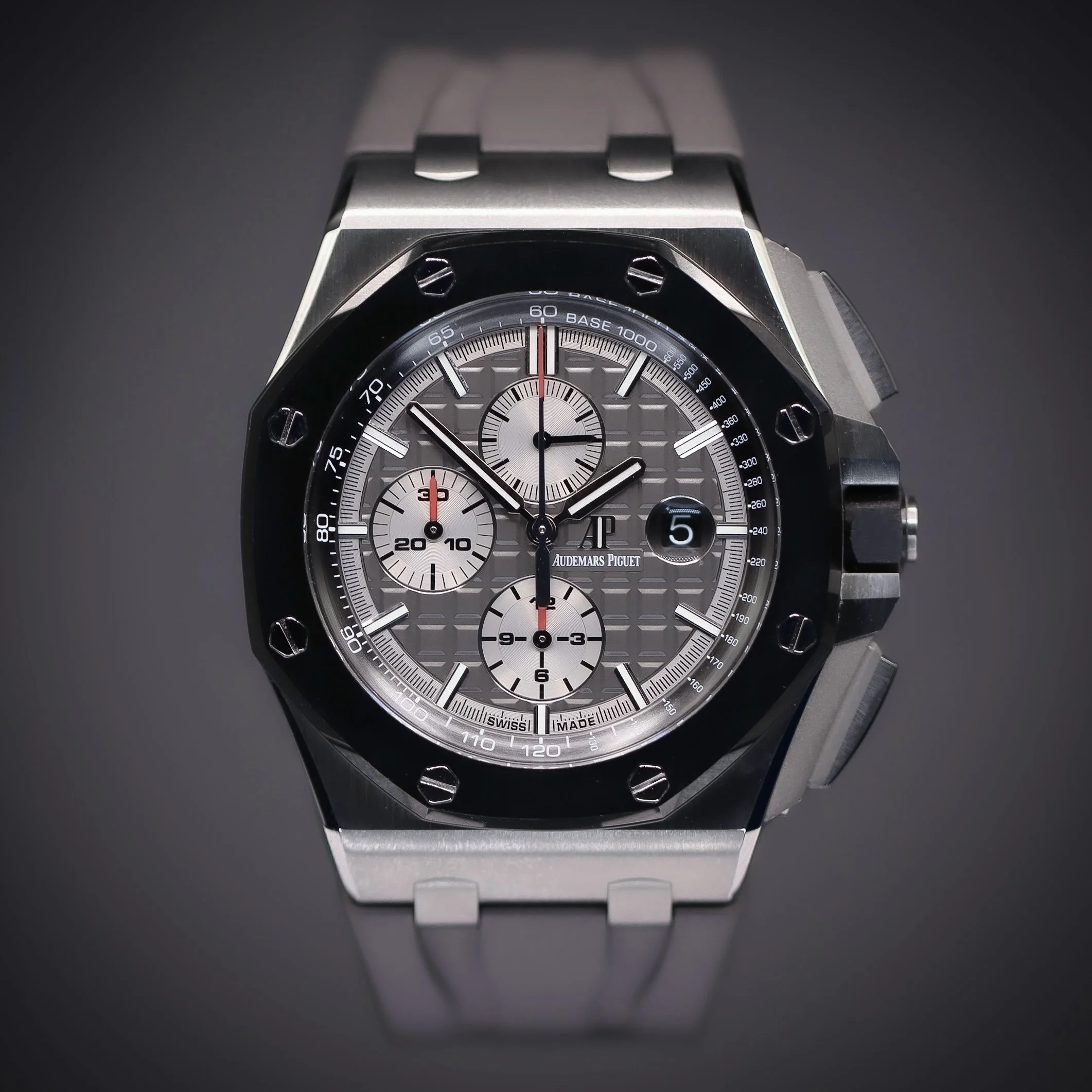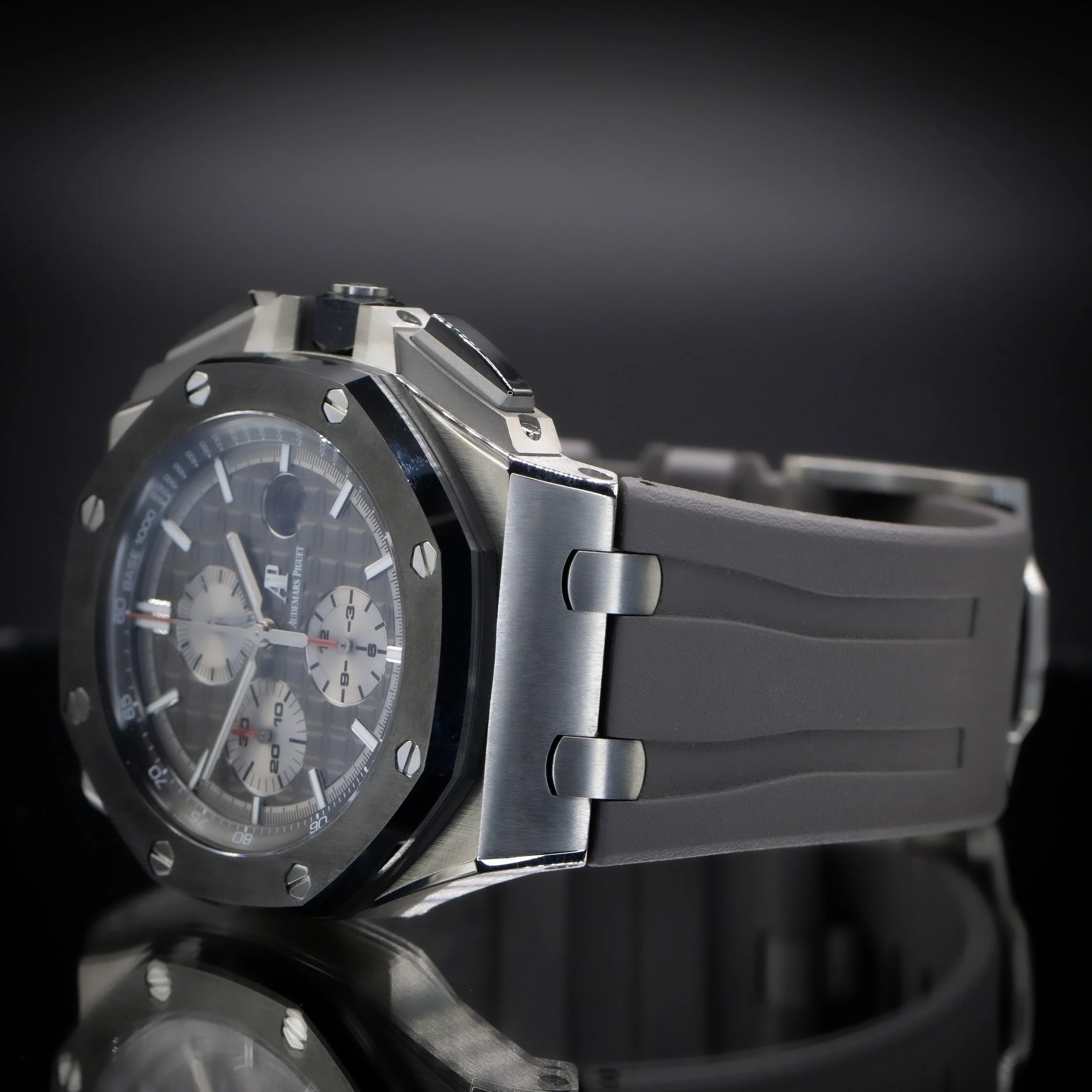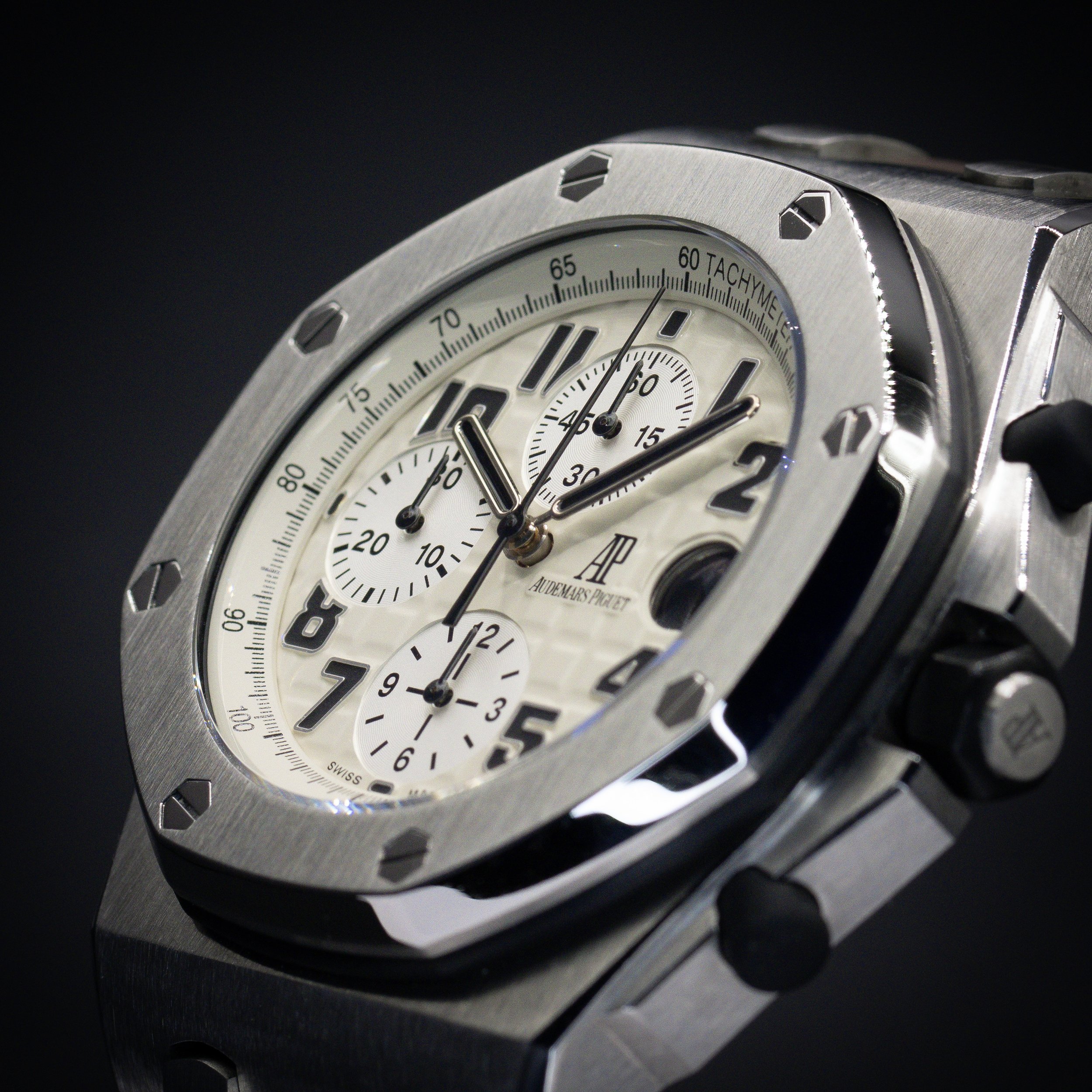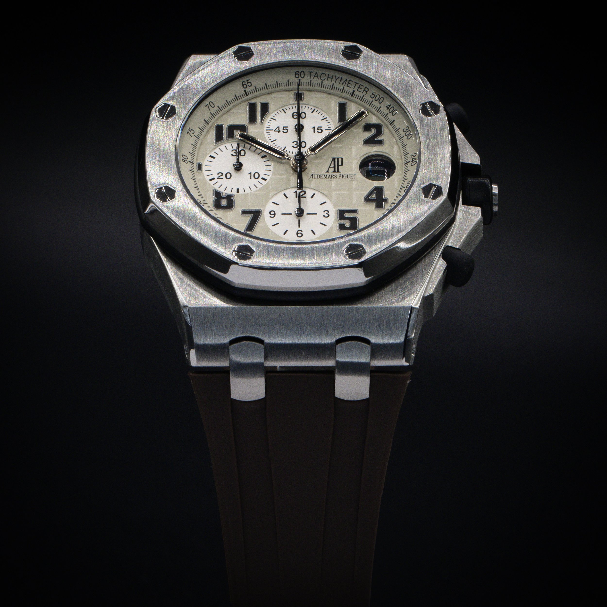 Audemars Piguet Categories: All Audemars Piguet Blancpain Breitling Cartier Chopard Chronoswiss Grand Seiko Franck Muller Girard-Perregaux H. Moser & Cie. Hublot IWC Jaeger-LeCoultre Lady's Timepieces MB&F Omega Panerai Patek Philippe Rolex Thomas Ninchritz Tudor Ulysse Nardin Vacheron Constantin All / All Audemars Piguet Blancpain Breitling Cartier Chopard Chronoswiss Grand Seiko Franck Muller Girard-Perregaux H. Moser & Cie. Hublot IWC Jaeger-LeCoultre Lady's Timepieces MB&F Omega Panerai Patek Philippe Rolex Thomas Ninchritz Tudor Ulysse Nardin Vacheron Constantin AUDEMARS PIGUET Royal Oak Offshore 44 | Grey Panda |Ceramic | Ref. 26400IO.OO.A004CA.01 | Full Set $23,995.00 Available Upon Request AUDEMARS PIGUET Royal Oak Offshore “Safari” | Ref. 26170ST.OO.D091CR.01 | Watch, COA, Appraisal $17,995.00 AUDEMARS PIGUET Royal Oak 41 | Rhodium Dial | Steel Bracelet | Ref. 15400ST.OO.1220ST.04 | Full Set $38,495.00 BRAND NEW AUDEMARS PIGUET Royal Oak Chronograph 41 | Silver Dial | Ref. 26240ST.OO.1320ST.07 | Full Set $55,995.00 AUDEMARS PIGUET Royal Oak 41 | Silver Dial | 18k Rose Gold | Ref. 15400OR.OO.1220OR.02 | Full Set $72,495.00 AUDEMARS PIGUET Royal Oak 41 | Silver Dial | Steel Bracelet | Ref. 15400ST.OO.1220ST.02 | Full Set $37,495.00 AUDEMARS PIGUET Royal Oak Chronograph 39 “Kasparov” | Ref. 25960BA.OO.1185BA.01 | Watch & Archive Extracts $62,995.00 AUDEMARS PIGUET Royal Oak Perpetual Calendar 41 | Yellow Gold | Blue Dial | Ref. 26574BA.OO.1220BA.01 | Full Set $157,995.00 AUDEMARS PIGUET Royal Oak Offshore 42 “Indigo” | 26470ST.OO.A030CA.01 | Full Set $29,995.00 AUDEMARS PIGUET Royal Oak Offshore 42 “Safari” | Ref. 26470ST.OO.A801CR.01 | Full Set $21,495.00 AUDEMARS PIGUET Royal Oak Offshore 44 “Blue Smoke” | Ref. 26405CE.OO.A030CA.01 | Full Set $42,995.00 AUDEMARS PIGUET Star Wheel "Code 11.59" 41mm, Blue Aventurine Dial, Wandering Hours, Ref. 15212NB.OO.A002KB.01, Full Set $64,995.00 AUDEMARS PIGUET Royal Oak Offshore 42 | White Gold & Ceramic | Ref. 15720CN.OO.A002CA.01 | Full Set $36,995.00 AUDEMARS PIGUET Royal Oak Offshore Chronograph 42 “Tiffany” | Ref. 26238ST.OO.A340CA.01 | Full Set $45,995.00 Available Upon Request AUDEMARS PIGUET Royal Oak Offshore 42 “Navy” | Ref. 26470ST.OO.A027CA.01 | Full Set $21,995.00 AUDEMARS PIGUET Royal Oak Offshore Chronograph 42 “BRICK” | Black Dial | Rose Gold | Ref. 26470OR.OO.1000OR.03 | Full Set $71,995.00 AUDEMARS PIGUET Royal Oak Offshore Chronograph 44 “Gold Hands” | Black Ceramic | Ref. 26405CE.OO.A002CA.02 | Full Set $28,995.00 AUDEMARS PIGUET Royal Oak 41 | Silver (White) Dial | Ref. 15510ST.OO.1320ST.08 | Full Set $45,495.00 Available Upon Request AUDEMARS PIGUET Royal Oak Offshore “Blue Camo” 44mm, Ref. 26400SO.OO.A335CA.01, Complete Set with Extra Strap. Limited Edition! $36,495.00 AUDEMARS PIGUET Royal Oak Offshore Diver 44 | Slate Gray | Ref. 15720ST.OO.A009CA.01 | Full Set $28,995.00 AUDEMARS PIGUET Royal Oak Offshore “BEAST,” Ref. 26237ST.OO.1000ST.01, Complete Set $32,995.00 Available Upon Request AUDEMARS PIGUET Royal Oak Chronograph 41 Steel | Silver Dial | Ref. 26320ST.OO.1220ST.02 | Full Set $37,995.00 Available Upon Request AUDEMARS PIGUET Royal Oak Offshore Green “Khaki” Diver 42 | Ref. 15720ST | Full Set $28,495.00 Available Upon Request AUDEMARS PIGUET Royal Oak Offshore 43mm, Ceramic, Blue Dial, Ref. 26420CE.OO.A043VE.01, Full Set $52,995.00 Available Upon Request AUDEMARS PIGUET Royal Oak Chronograph “PANDA” 41, Silver & Black Dial, Ref. 26331ST.OO.1220SST.03, Full Set $43,995.00 Available Upon Request AUDEMARS PIGUET Code 11.59 41mm, “Purple Smoke” Dial, Rose Gold, Ref. 263930R.00.A616CR.01, Full Set Sale Price: $37,995.00 Original Price: $39,995.00 Available Upon Request AUDEMARS PIGUET Royal Oak Offshore Chronograph 44mm, Rose Gold & Ceramic “Reverse Panda”, Ref. 26401RO.OO.A002CA.01, Full Set $35,995.00 Available Upon Request Audemars Piguet Royal Oak Offshore Selfwinding 43 “Blue Smoke” | Ref. 15605SK | Full set $40,995.00 Available Upon Request AUDEMARS PIGUET Royal Oak Offshore 42 “Havana” | Ref. 26470ST.OO.A099CR.01 | Full Set $24,995.00 AUDEMARS PIGUET Royal Oak Offshore Chronograph 42 “Vampire,” Ref. 26470ST.OO.A101CR.01, Complete Set, BOTH Bezels $24,995.00 Jules Audemars Titanium “6th Day” Schwarzenegger, Limited to 50 Pieces, Ref. 25949IP.O.0001KE.01, Box & 2022 Service Papers $20,995.00 Available Upon Request AUDEMARS PIGUET Royal Oak Selfwinding 41 in Rose Gold, Silver Dial, Ref. 15400OR.OO.D088CR.01, Navy Rubber Strap, 18K Rose Gold “Homage” Bracelet, Full Set $53,995.00 AUDEMARS PIGUET Royal Oak Offshore Chronograph 43mm, Grey Dial, Leather Strap, Ref. 26420OI.OO.A015VE.01, Full Set $60,995.00 *BRAND NEW* Audemars Piguet Royal Oak 41mm, Rose Gold, Black Dial, Ref. 26240OR.OO.1320OR.02, Complete Set $69,995.00 Available Upon Request AUDEMARS PIGUET Royal Oak Offshore Diver “Funky Colors,” Ref. 15710ST.OO.A027CA.01, Complete Set with Extra StraP $21,495.00 AUDEMARS PIGUET Royal Oak Offshore Chronograph 42 “Vampire,” Ref. 26470ST.OO.A101CR.01, Complete Set $23,495.00 AUDEMARS PIGUET Royal Oak “JUMBO” 39, Rose Gold, Black Dial, Leather Strap Ref. 15300OR.OO.D002CR.01, Box, 2023 Service Papers, Archive Extracts $31,995.00 Available Upon Request Audemars Piguet Royal Oak Offshore Chrono “Green Camo” 44, Ref. 26400SO, Complete Set with Extra Strap. Limited Edition of 400 pieces $32,995.00 AUDEMARS PIGUET Royal Oak Offshore Chronograph 42mm “Half Brick”, Black Dial, Ref. 26470OR.OO.A002CR.02, Full Set $46,995.00 Available Upon Request AUDEMARS PIGUET Royal Oak Offshore 42 “Ghost,” Ref. 26470IO.OO.A006CA.01, Full Set $26,995.00 Available Upon Request AUDEMARS PIGUET Royal Oak Offshore "HALF BRICK", Rose Gold, Rhodium Dial, Ref. 26470OR.OO.A125CR.01, Complete Set with Extra Strap $39,995.00 Available Upon Request AUDEMARS PIGUET Royal Oak Offshore Self-Winding 37, “Music” Limited Edition of 500 Pieces, R