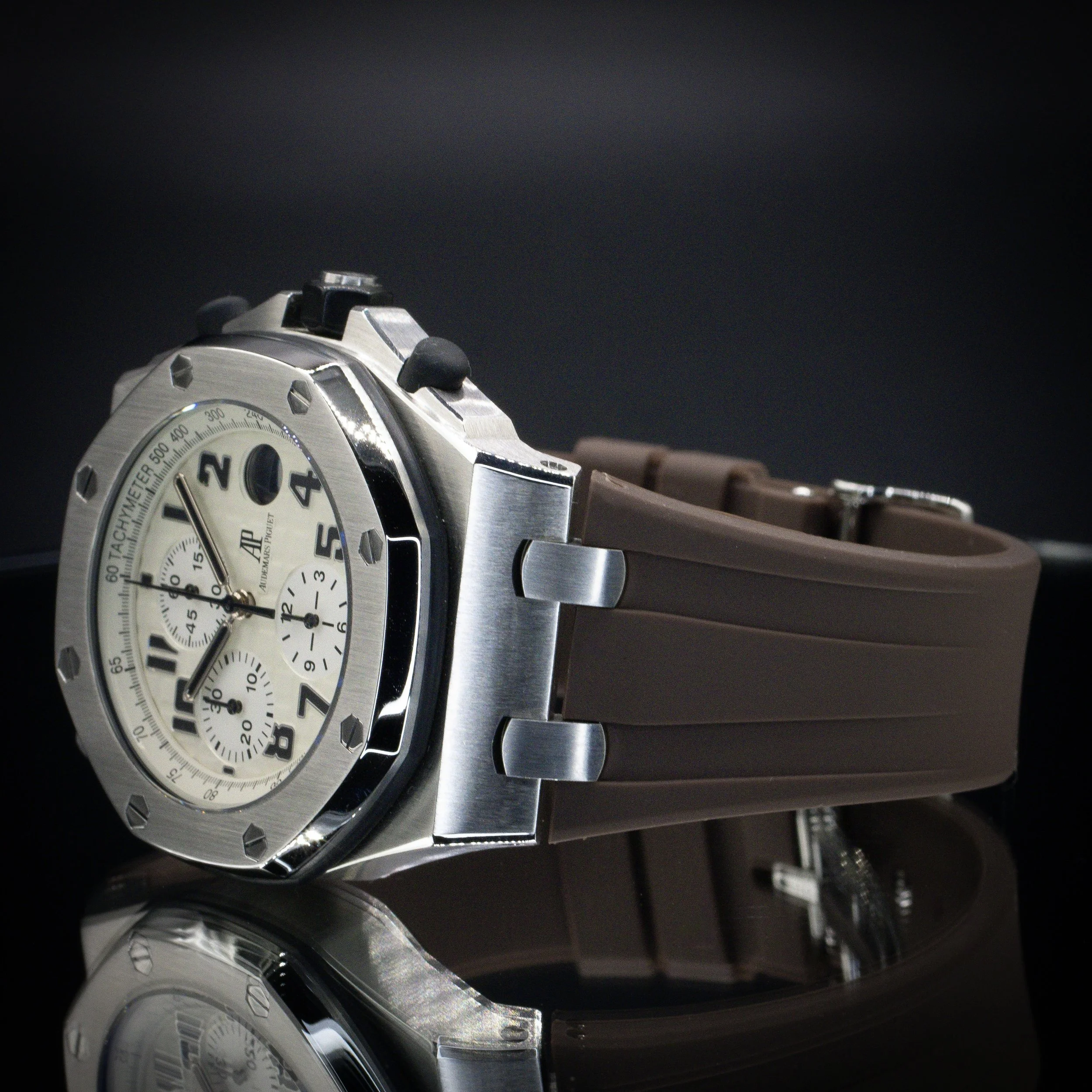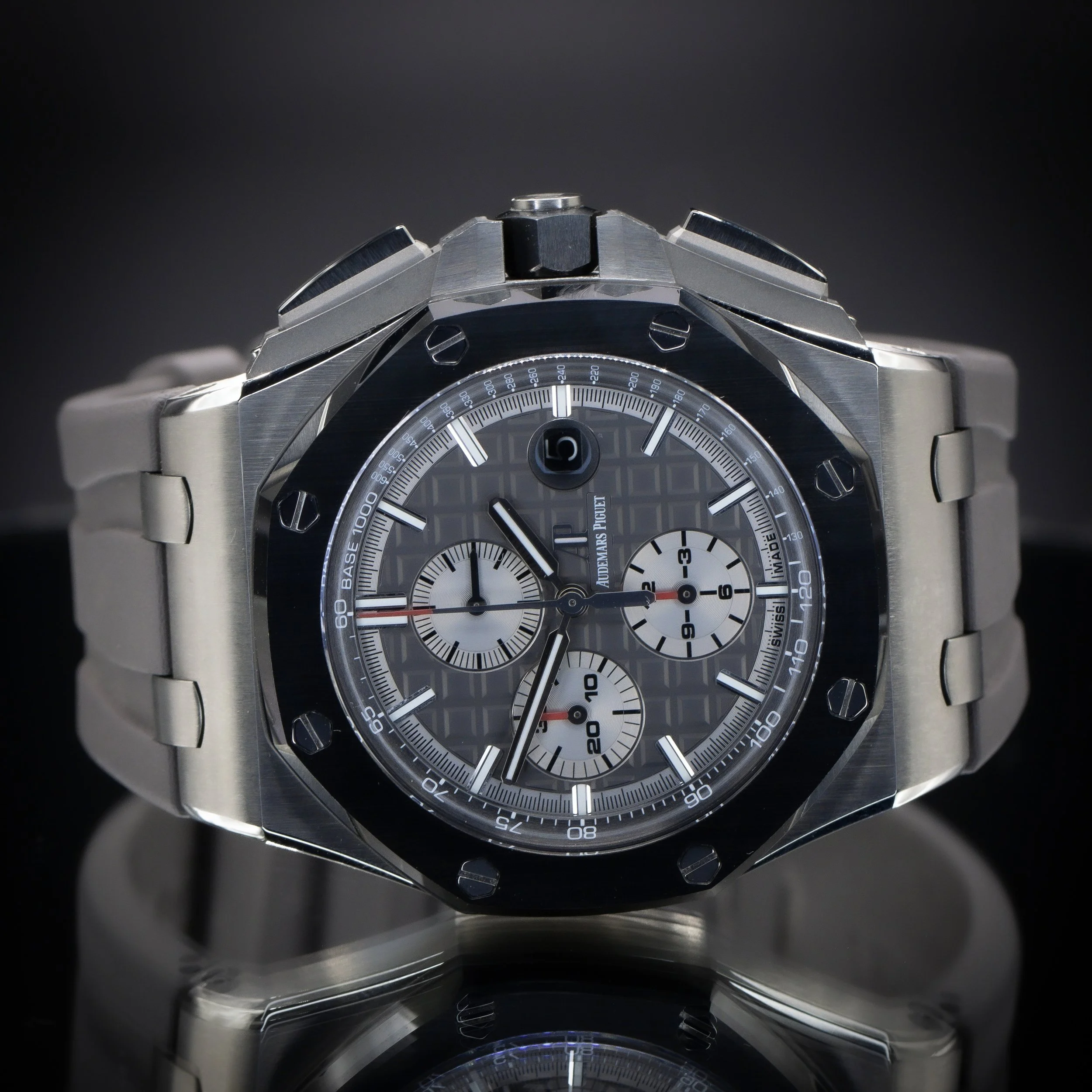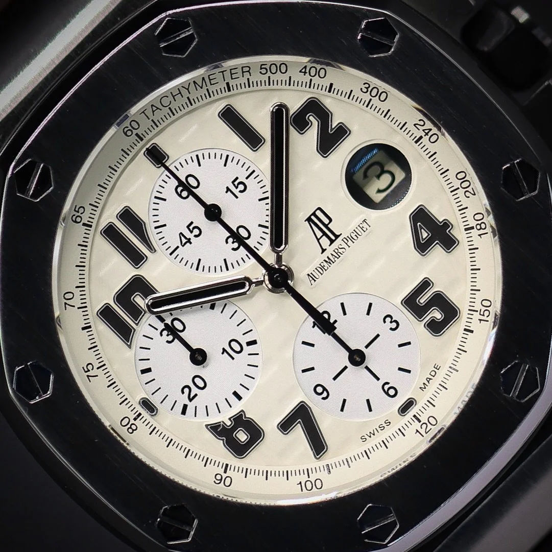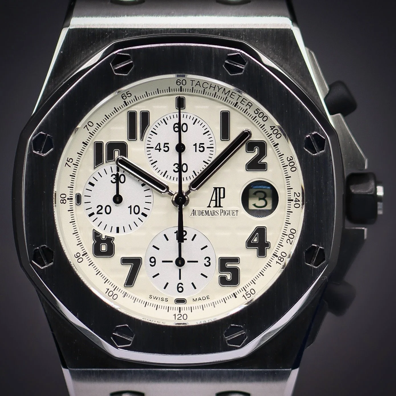 Audemars Piguet Categories: All Audemars Piguet Blancpain Breitling Cartier Chopard Chronoswiss Grand Seiko Franck Muller Girard-Perregaux H. Moser & Cie. Hublot IWC Jaeger-LeCoultre Lady's Timepieces MB&F Omega Panerai Patek Philippe Rolex Thomas Ninchritz Tudor Ulysse Nardin Vacheron Constantin All / All Audemars Piguet Blancpain Breitling Cartier Chopard Chronoswiss Grand Seiko Franck Muller Girard-Perregaux H. Moser & Cie. Hublot IWC Jaeger-LeCoultre Lady's Timepieces MB&F Omega Panerai Patek Philippe Rolex Thomas Ninchritz Tudor Ulysse Nardin Vacheron Constantin AUDEMARS PIGUET Royal Oak Offshore 44 | Grey Panda |Ceramic | Ref. 26400IO.OO.A004CA.01 | Full Set $23,995.00 Available Upon Request AUDEMARS PIGUET Royal Oak Offshore “Safari” | Ref. 26170ST.OO.D091CR.01 | Watch, COA, Appraisal $17,995.00 AUDEMARS PIGUET Royal Oak 41 | Rhodium Dial | Steel Bracelet | Ref. 15400ST.OO.1220ST.04 | Full Set $38,495.00 BRAND NEW AUDEMARS PIGUET Royal Oak Chronograph 41 | Silver Dial | Ref. 26240ST.OO.1320ST.07 | Full Set $55,995.00 AUDEMARS PIGUET Royal Oak 41 | Silver Dial | 18k Rose Gold | Ref. 15400OR.OO.1220OR.02 | Full Set $72,495.00 AUDEMARS PIGUET Royal Oak 41 | Silver Dial | Steel Bracelet | Ref. 15400ST.OO.1220ST.02 | Full Set $37,495.00 AUDEMARS PIGUET Royal Oak Chronograph 39 “Kasparov” | Ref. 25960BA.OO.1185BA.01 | Watch & Archive Extracts $62,995.00 AUDEMARS PIGUET Royal Oak Perpetual Calendar 41 | Yellow Gold | Blue Dial | Ref. 26574BA.OO.1220BA.01 | Full Set $157,995.00 AUDEMARS PIGUET Royal Oak Offshore 42 “Indigo” | 26470ST.OO.A030CA.01 | Full Set $29,995.00 AUDEMARS PIGUET Royal Oak Offshore 42 “Safari” | Ref. 26470ST.OO.A801CR.01 | Full Set $21,495.00 AUDEMARS PIGUET Royal Oak Offshore 44 “Blue Smoke” | Ref. 26405CE.OO.A030CA.01 | Full Set $42,995.00 AUDEMARS PIGUET Star Wheel "Code 11.59" 41mm, Blue Aventurine Dial, Wandering Hours, Ref. 15212NB.OO.A002KB.01, Full Set $64,995.00 AUDEMARS PIGUET Royal Oak Offshore 42 | White Gold & Ceramic | Ref. 15720CN.OO.A002CA.01 | Full Set $36,995.00 AUDEMARS PIGUET Royal Oak Offshore Chronograph 42 “Tiffany” | Ref. 26238ST.OO.A340CA.01 | Full Set $45,995.00 Available Upon Request AUDEMARS PIGUET Royal Oak Offshore 42 “Navy” | Ref. 26470ST.OO.A027CA.01 | Full Set $21,995.00 AUDEMARS PIGUET Royal Oak Offshore Chronograph 42 “BRICK” | Black Dial | Rose Gold | Ref. 26470OR.OO.1000OR.03 | Full Set $71,995.00 AUDEMARS PIGUET Royal Oak Offshore Chronograph 44 “Gold Hands” | Black Ceramic | Ref. 26405CE.OO.A002CA.02 | Full Set $28,995.00 AUDEMARS PIGUET Royal Oak 41 | Silver (White) Dial | Ref. 15510ST.OO.1320ST.08 | Full Set $45,495.00 Available Upon Request AUDEMARS PIGUET Royal Oak Offshore “Blue Camo” 44mm, Ref. 26400SO.OO.A335CA.01, Complete Set with Extra Strap. Limited Edition! $36,495.00 AUDEMARS PIGUET Royal Oak Offshore Diver 44 | Slate Gray | Ref. 15720ST.OO.A009CA.01 | Full Set $28,995.00 AUDEMARS PIGUET Royal Oak Offshore “BEAST,” Ref. 26237ST.OO.1000ST.01, Complete Set $32,995.00 Available Upon Request AUDEMARS PIGUET Royal Oak Chronograph 41 Steel | Silver Dial | Ref. 26320ST.OO.1220ST.02 | Full Set $37,995.00 Available Upon Request AUDEMARS PIGUET Royal Oak Offshore Green “Khaki” Diver 42 | Ref. 15720ST | Full Set $28,495.00 Available Upon Request AUDEMARS PIGUET Royal Oak Offshore 43mm, Ceramic, Blue Dial, Ref. 26420CE.OO.A043VE.01, Full Set $52,995.00 Available Upon Request AUDEMARS PIGUET Royal Oak Chronograph “PANDA” 41, Silver & Black Dial, Ref. 26331ST.OO.1220SST.03, Full Set $43,995.00 Available Upon Request AUDEMARS PIGUET Code 11.59 41mm, “Purple Smoke” Dial, Rose Gold, Ref. 263930R.00.A616CR.01, Full Set Sale Price: $37,995.00 Original Price: $39,995.00 Available Upon Request AUDEMARS PIGUET Royal Oak Offshore Chronograph 44mm, Rose Gold & Ceramic “Reverse Panda”, Ref. 26401RO.OO.A002CA.01, Full Set $35,995.00 Available Upon Request Audemars Piguet Royal Oak Offshore Selfwinding 43 “Blue Smoke” | Ref. 15605SK | Full set $40,995.00 Available Upon Request AUDEMARS PIGUET Royal Oak Offshore 42 “Havana” | Ref. 26470ST.OO.A099CR.01 | Full Set $24,995.00 AUDEMARS PIGUET Royal Oak Offshore Chronograph 42 “Vampire,” Ref. 26470ST.OO.A101CR.01, Complete Set, BOTH Bezels $24,995.00 Jules Audemars Titanium “6th Day” Schwarzenegger, Limited to 50 Pieces, Ref. 25949IP.O.0001KE.01, Box & 2022 Service Papers $20,995.00 Available Upon Request AUDEMARS PIGUET Royal Oak Selfwinding 41 in Rose Gold, Silver Dial, Ref. 15400OR.OO.D088CR.01, Navy Rubber Strap, 18K Rose Gold “Homage” Bracelet, Full Set $53,995.00 AUDEMARS PIGUET Royal Oak Offshore Chronograph 43mm, Grey Dial, Leather Strap, Ref. 26420OI.OO.A015VE.01, Full Set $60,995.00 *BRAND NEW* Audemars Piguet Royal Oak 41mm, Rose Gold, Black Dial, Ref. 26240OR.OO.1320OR.02, Complete Set $69,995.00 Available Upon Request AUDEMARS PIGUET Royal Oak Offshore Diver “Funky Colors,” Ref. 15710ST.OO.A027CA.01, Complete Set with Extra StraP $21,495.00 AUDEMARS PIGUET Royal Oak Offshore Chronograph 42 “Vampire,” Ref. 26470ST.OO.A101CR.01, Complete Set $23,495.00 AUDEMARS PIGUET Royal Oak “JUMBO” 39, Rose Gold, Black Dial, Leather Strap Ref. 15300OR.OO.D002CR.01, Box, 2023 Service Papers, Archive Extracts $31,995.00 Available Upon Request Audemars Piguet Royal Oak Offshore Chrono “Green Camo” 44, Ref. 26400SO, Complete Set with Extra Strap. Limited Edition of 400 pieces $32,995.00 AUDEMARS PIGUET Royal Oak Offshore Chronograph 42mm “Half Brick”, Black Dial, Ref. 26470OR.OO.A002CR.02, Full Set $46,995.00 Available Upon Request AUDEMARS PIGUET Royal Oak Offshore 42 “Ghost,” Ref. 26470IO.OO.A006CA.01, Full Set $26,995.00 Available Upon Request AUDEMARS PIGUET Royal Oak Offshore "HALF BRICK", Rose Gold, Rhodium Dial, Ref. 26470OR.OO.A125CR.01, Complete Set with Extra Strap $39,995.00 Available Upon Request AUDEMARS PIGUET Royal Oak Offshore Self-Winding 37, “Music” Limited Edition of 500 Pieces, R