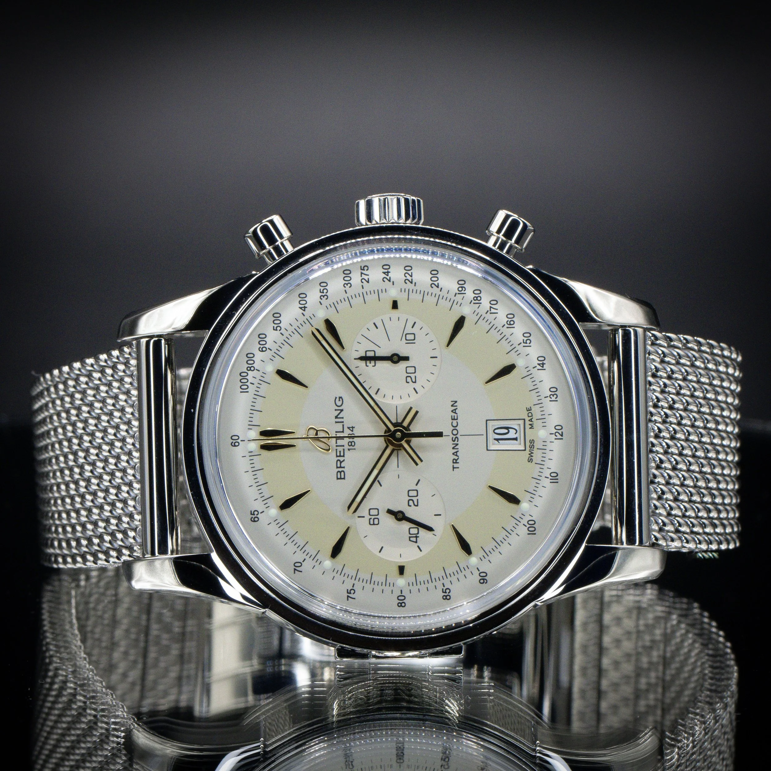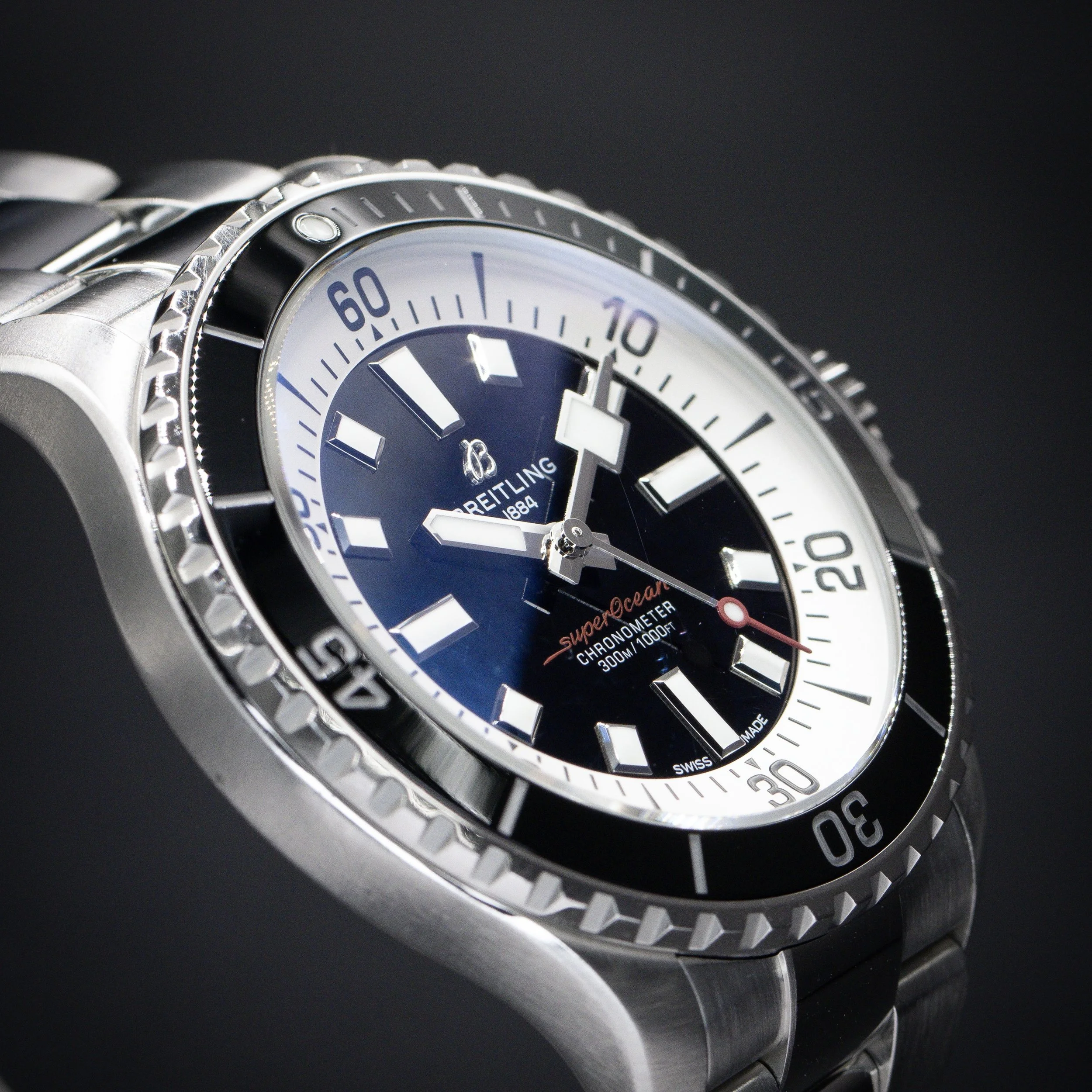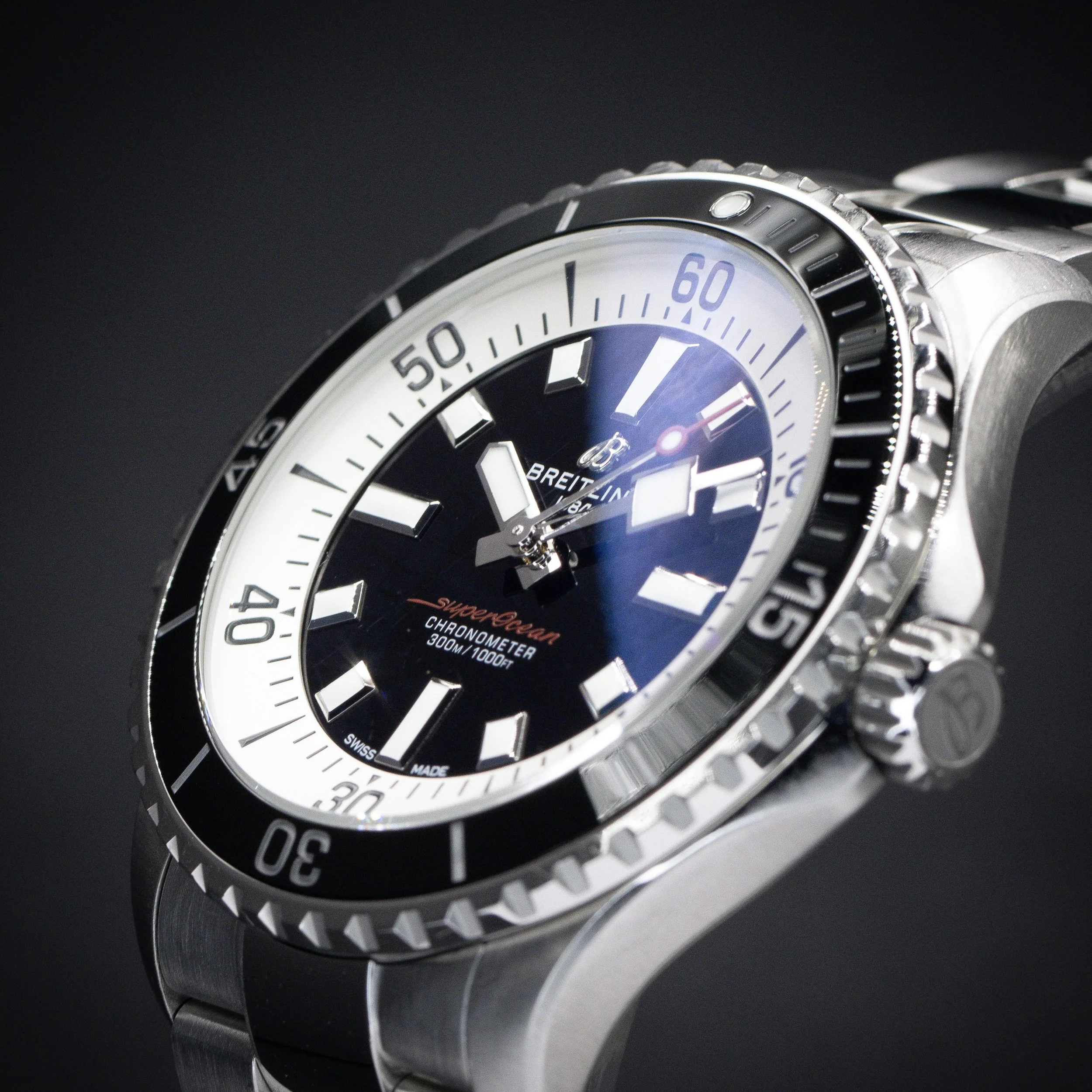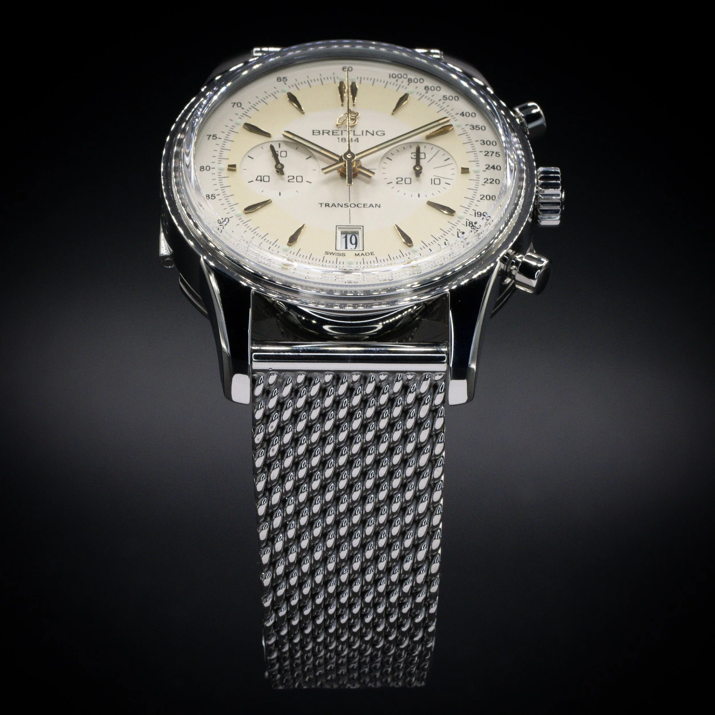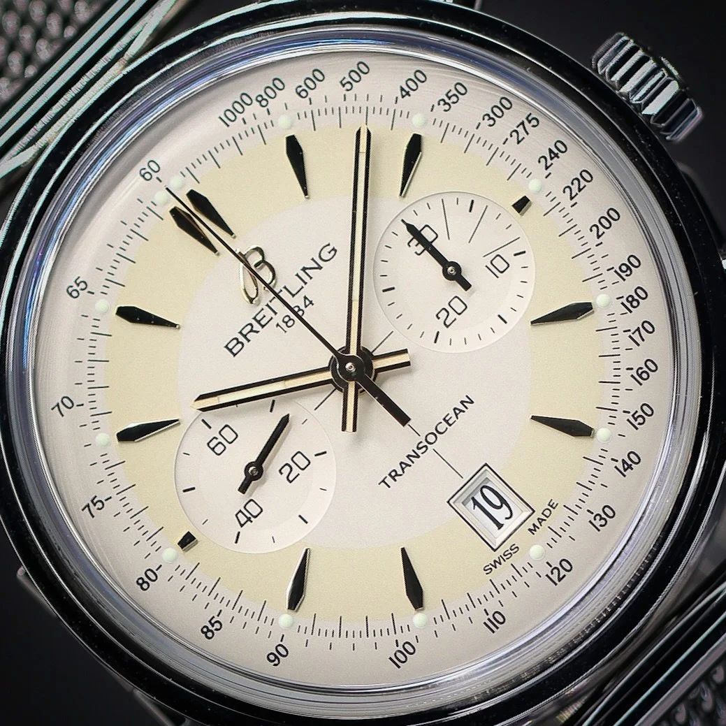 Breitling Categories: All Audemars Piguet Blancpain Breitling Cartier Chopard Chronoswiss Grand Seiko Franck Muller Girard-Perregaux H. Moser & Cie. Hublot IWC Jaeger-LeCoultre Lady's Timepieces MB&F Omega Panerai Patek Philippe Rolex Thomas Ninchritz Tudor Ulysse Nardin Vacheron Constantin All / All Audemars Piguet Blancpain Breitling Cartier Chopard Chronoswiss Grand Seiko Franck Muller Girard-Perregaux H. Moser & Cie. Hublot IWC Jaeger-LeCoultre Lady's Timepieces MB&F Omega Panerai Patek Philippe Rolex Thomas Ninchritz Tudor Ulysse Nardin Vacheron Constantin BREITLING Transocean Chronograph Edition 43 | Ref. AB015412/G784 | Limited to 2000 Units | Watch Only $7,595.00 Available Upon Request BREITLING Superocean 44 | Black Dial | Ref. A17376211B1A1 | Full Set $3,995.00 BREITLING Navitimer B01 Chronograph 46 “Blue Panda” | Ref. AB0137211C1A1 | Full Set $6,495.00 BREITLING Chronomat B01 42 “Silver Panda” | Ref. AB0134101G1A1 | Full Set with Extra Strap $5,795.00 BREITLING Navitimer B01 Chronograph 41 | White Dial | Ref. AB0139A71G1A1 | EXTENDED WARRANTY | Full Set $6,995.00 BREITLING Navitimer 1 B01 Chronograph 43 “Ice Blue” | Ref. AB0138241C1A1 | Full Set $6,995.00 Available Upon Request BREITLING SuperOcean 44 | Bronze | Blue Dial | Ref. N173761A1C1S1 | Full Set $4,495.00 BREITLING Navitimer 1 B01 Chronograph 43 | “Silver Panda” | Ref. AB0138241G1A1 | Full Set $6,895.00 BREITLING Navitimer 1 B01 Chronograph 43 “Japan Limited Edition” | Ref. AB0121A21B1A1 | Grey Matte Dial | Full Set $6,795.00 Available Upon Request BREITLING Navitimer B01 Chronograph 43 | “BATMAN” | Ref. AB0121211C1A1, Complete Set $6,195.00 BREITLING Chronomat B01 42 NFL NY Giants Edition | Ref. AB01342B1CAS1 | Full Set $7,295.00 BREITLING Navitimer Heritage 43 | “Panda” Dial | Ref. A35350 | Full Set $4,995.00 BREITLING Navitimer Montbrillant Chronograph 38 | Black Dial | Ref. A41330 | Full Set $3,995.00 BREITLING Navitimer 1 B01 Chronograph 43 “Pan-Am Edition” | Ref. AB01212B1C1A1 | Full Set $7,995.00 BREITLING Navitimer GMT 41 “Ice Blue” | Gator Strap | Ref. A32310| Full Set $4,495.00 BREITLING Navitimer World 46 | White Dial | Steel Bracelet | Ref. A24322 | Full Set $4,995.00 BREITLING Navitimer World 46 | Blue Dial | Steel Bracelet | Ref. A2432212/C651 | Full Set $4,995.00 BREITLING Navitimer 01 Chronograph 46 | “Blue Panda” | Bracelet | Ref. AB0127 | Full Set $5,995.00 BREITLING Galactic Unitime SleekT 44 Pilot | Bracelet | Ref: WB3510U4/BD94-375A | Full Set $5,695.00 Available Upon Request BREITLING Navitimer 1 B01 Chronograph 43 | Gray Sunburst | Ref. UB0121 | Full Set $6,995.00 BREITLING Superocean Heritage B01 Chronograph 44 L/E | Green Dial | Ref. MB01621A1L1S1 | Full Set $8,195.00 BREITLING Navitimer 01 Chronograph 43 “PANDA” | Black | Bracelet | Ref. AB012012/BB02 | Full Set $4,995.00 BREITLING Navitimer 01 Chronograph 46mm | “Panda” | Bracelet | Ref. AB0127 | Full Set $5,995.00 Available Upon Request BREITLING Navitimer World 46 | Black Dial | Steel Bracelet | Ref. A2432212/B726 | Full Set $5,495.00 BREITLING Chronomat Evolution 44 | Mother-of-Pearl Dial | Factory Diamond Bezel | Ref. A1335653/A569 | Full Set $6,295.00 BREITLING Premier Chronograph 42, Blue Dial on Bracelet, Ref. A13315351C1A1, Full Set $4,395.00 Available Upon Request