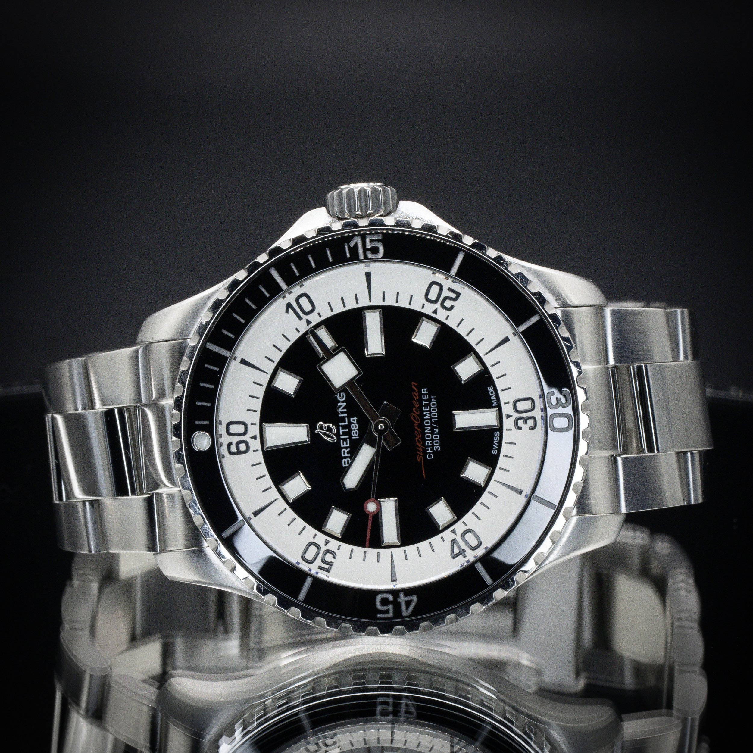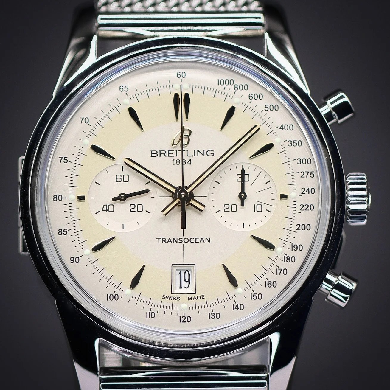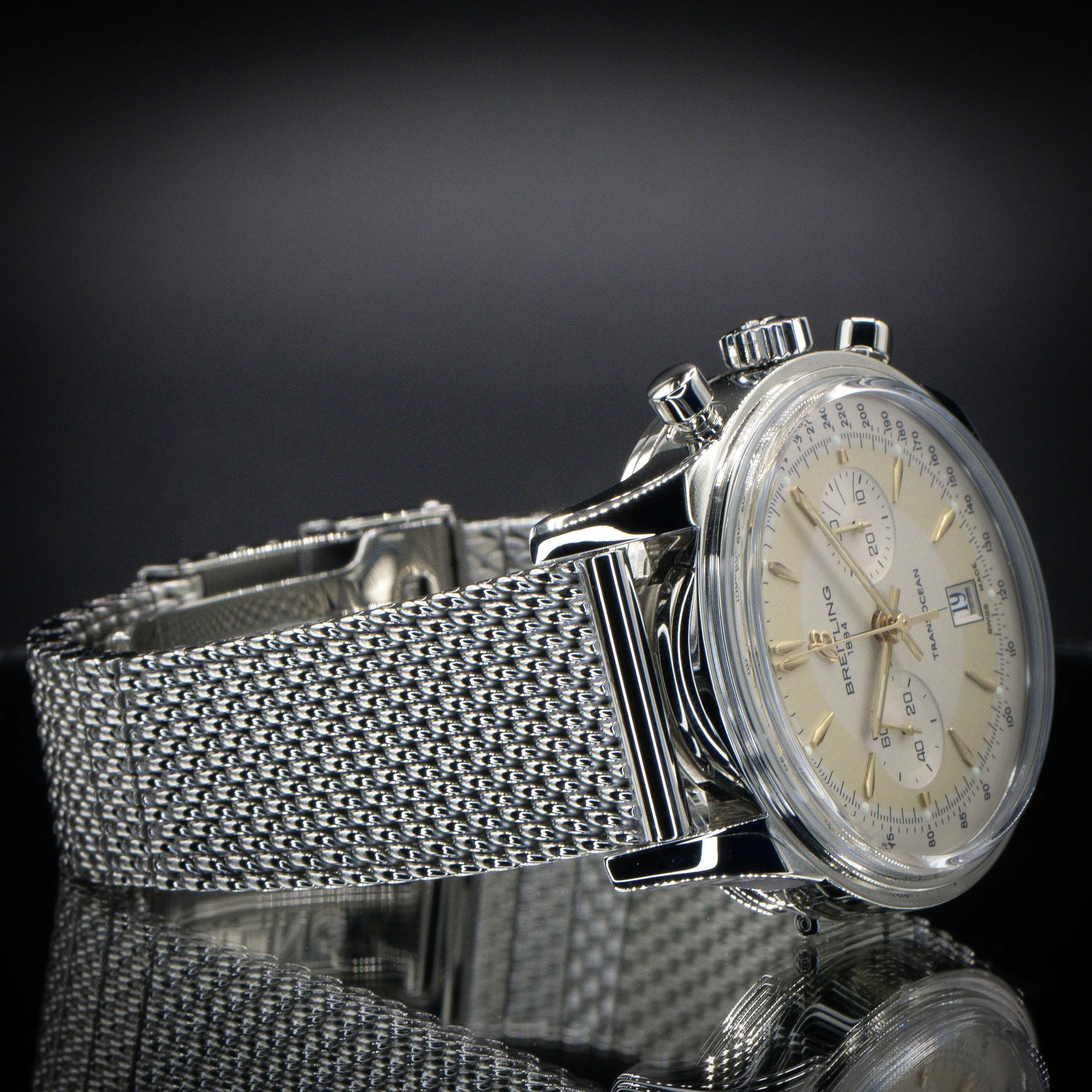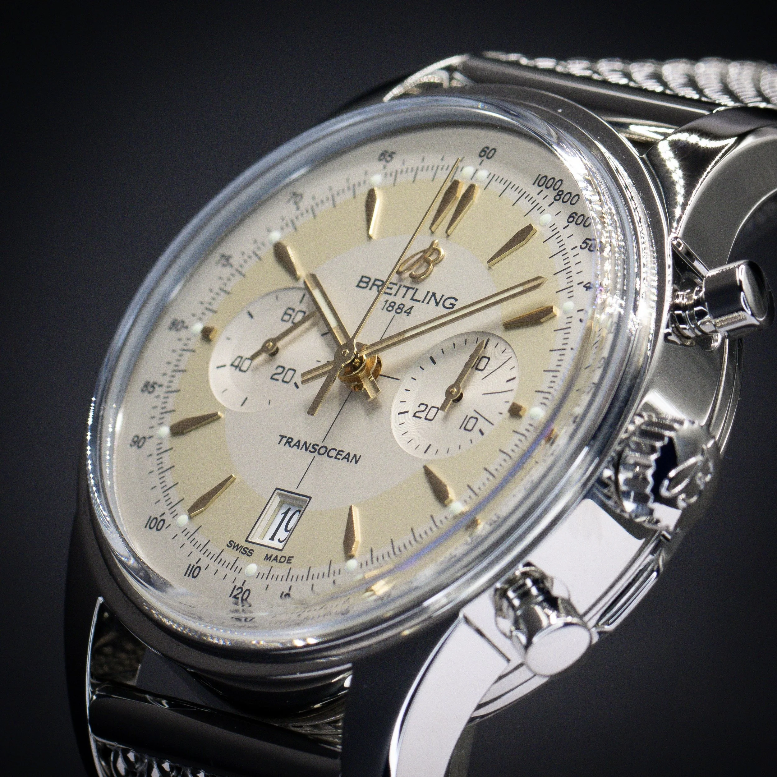 Breitling Categories: All Audemars Piguet Blancpain Breitling Cartier Chopard Chronoswiss Grand Seiko Franck Muller Girard-Perregaux H. Moser & Cie. Hublot IWC Jaeger-LeCoultre Lady's Timepieces MB&F Omega Panerai Patek Philippe Rolex Thomas Ninchritz Tudor Ulysse Nardin Vacheron Constantin All / All Audemars Piguet Blancpain Breitling Cartier Chopard Chronoswiss Grand Seiko Franck Muller Girard-Perregaux H. Moser & Cie. Hublot IWC Jaeger-LeCoultre Lady's Timepieces MB&F Omega Panerai Patek Philippe Rolex Thomas Ninchritz Tudor Ulysse Nardin Vacheron Constantin BREITLING Transocean Chronograph Edition 43 | Ref. AB015412/G784 | Limited to 2000 Units | Watch Only $7,595.00 Available Upon Request BREITLING Superocean 44 | Black Dial | Ref. A17376211B1A1 | Full Set $3,995.00 BREITLING Navitimer B01 Chronograph 46 “Blue Panda” | Ref. AB0137211C1A1 | Full Set $6,495.00 BREITLING Chronomat B01 42 “Silver Panda” | Ref. AB0134101G1A1 | Full Set with Extra Strap $5,795.00 BREITLING Navitimer B01 Chronograph 41 | White Dial | Ref. AB0139A71G1A1 | EXTENDED WARRANTY | Full Set $6,995.00 BREITLING Navitimer 1 B01 Chronograph 43 “Ice Blue” | Ref. AB0138241C1A1 | Full Set $6,995.00 Available Upon Request BREITLING SuperOcean 44 | Bronze | Blue Dial | Ref. N173761A1C1S1 | Full Set $4,495.00 BREITLING Navitimer 1 B01 Chronograph 43 | “Silver Panda” | Ref. AB0138241G1A1 | Full Set $6,895.00 BREITLING Navitimer 1 B01 Chronograph 43 “Japan Limited Edition” | Ref. AB0121A21B1A1 | Grey Matte Dial | Full Set $6,795.00 Available Upon Request BREITLING Navitimer B01 Chronograph 43 | “BATMAN” | Ref. AB0121211C1A1, Complete Set $6,195.00 BREITLING Chronomat B01 42 NFL NY Giants Edition | Ref. AB01342B1CAS1 | Full Set $7,295.00 BREITLING Navitimer Heritage 43 | “Panda” Dial | Ref. A35350 | Full Set $4,995.00 BREITLING Navitimer Montbrillant Chronograph 38 | Black Dial | Ref. A41330 | Full Set $3,995.00 BREITLING Navitimer 1 B01 Chronograph 43 “Pan-Am Edition” | Ref. AB01212B1C1A1 | Full Set $7,995.00 BREITLING Navitimer GMT 41 “Ice Blue” | Gator Strap | Ref. A32310| Full Set $4,495.00 BREITLING Navitimer World 46 | White Dial | Steel Bracelet | Ref. A24322 | Full Set $4,995.00 BREITLING Navitimer World 46 | Blue Dial | Steel Bracelet | Ref. A2432212/C651 | Full Set $4,995.00 BREITLING Navitimer 01 Chronograph 46 | “Blue Panda” | Bracelet | Ref. AB0127 | Full Set $5,995.00 BREITLING Galactic Unitime SleekT 44 Pilot | Bracelet | Ref: WB3510U4/BD94-375A | Full Set $5,695.00 Available Upon Request BREITLING Navitimer 1 B01 Chronograph 43 | Gray Sunburst | Ref. UB0121 | Full Set $6,995.00 BREITLING Superocean Heritage B01 Chronograph 44 L/E | Green Dial | Ref. MB01621A1L1S1 | Full Set $8,195.00 BREITLING Navitimer 01 Chronograph 43 “PANDA” | Black | Bracelet | Ref. AB012012/BB02 | Full Set $4,995.00 BREITLING Navitimer 01 Chronograph 46mm | “Panda” | Bracelet | Ref. AB0127 | Full Set $5,995.00 Available Upon Request BREITLING Navitimer World 46 | Black Dial | Steel Bracelet | Ref. A2432212/B726 | Full Set $5,495.00 BREITLING Chronomat Evolution 44 | Mother-of-Pearl Dial | Factory Diamond Bezel | Ref. A1335653/A569 | Full Set $6,295.00 BREITLING Premier Chronograph 42, Blue Dial on Bracelet, Ref. A13315351C1A1, Full Set $4,395.00 Available Upon Request