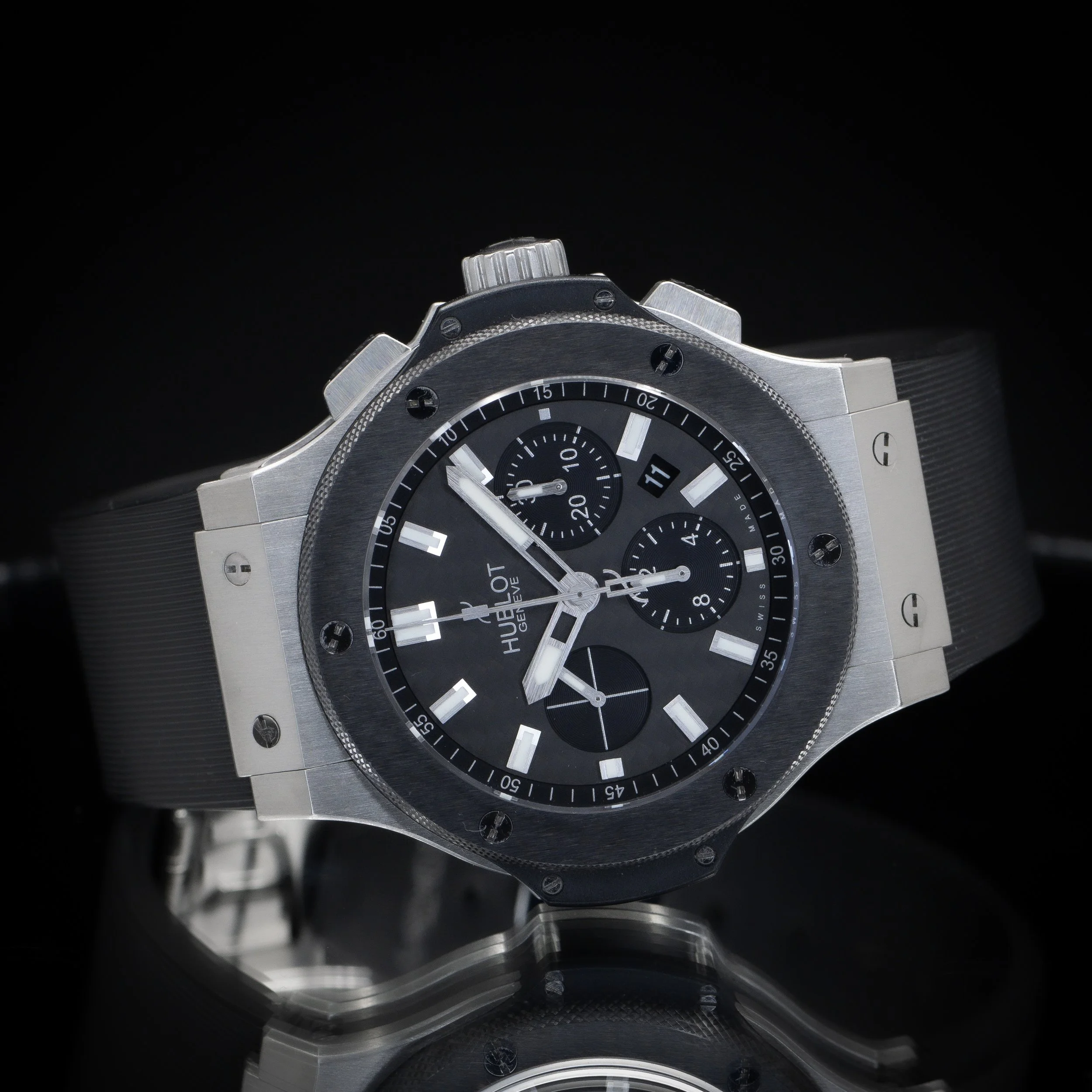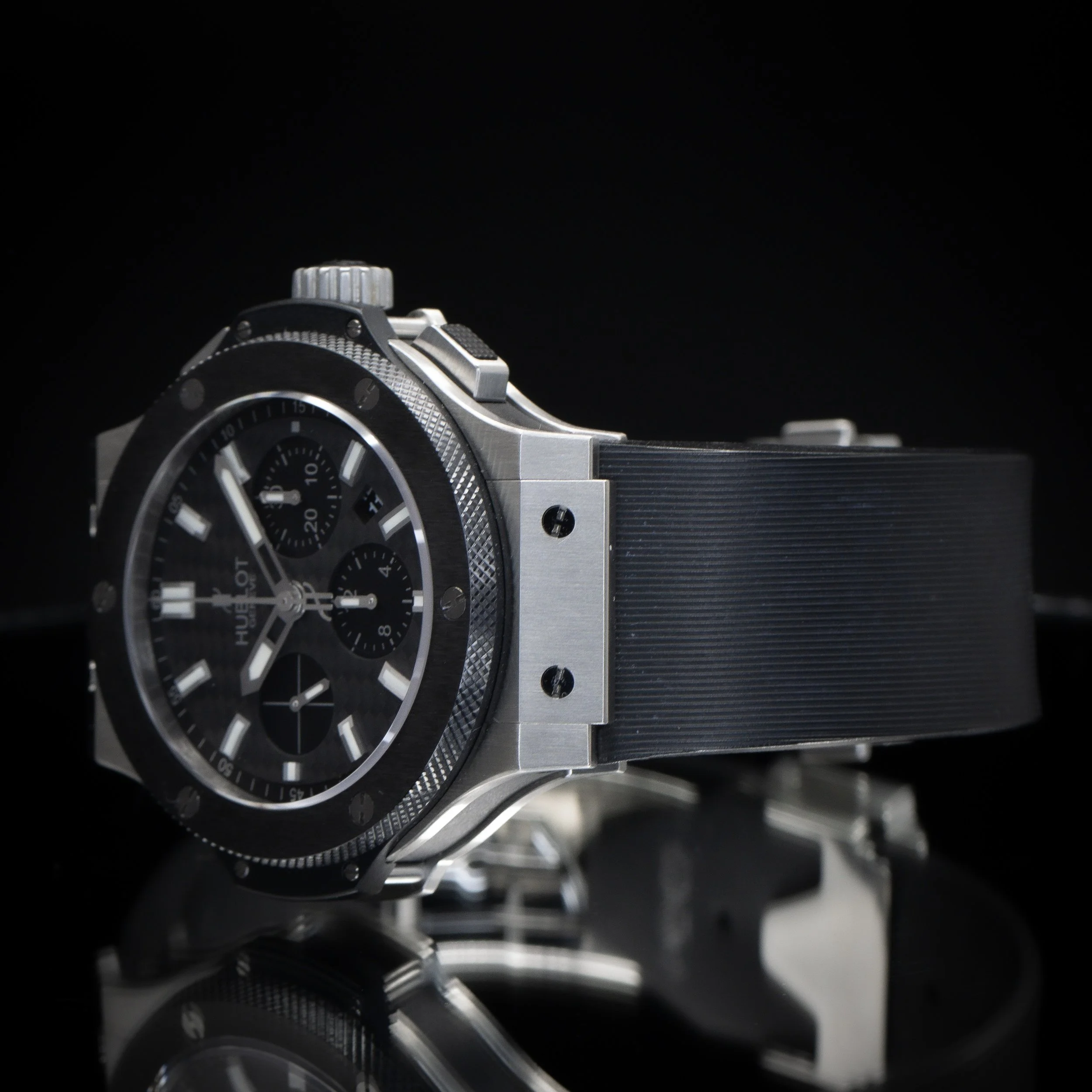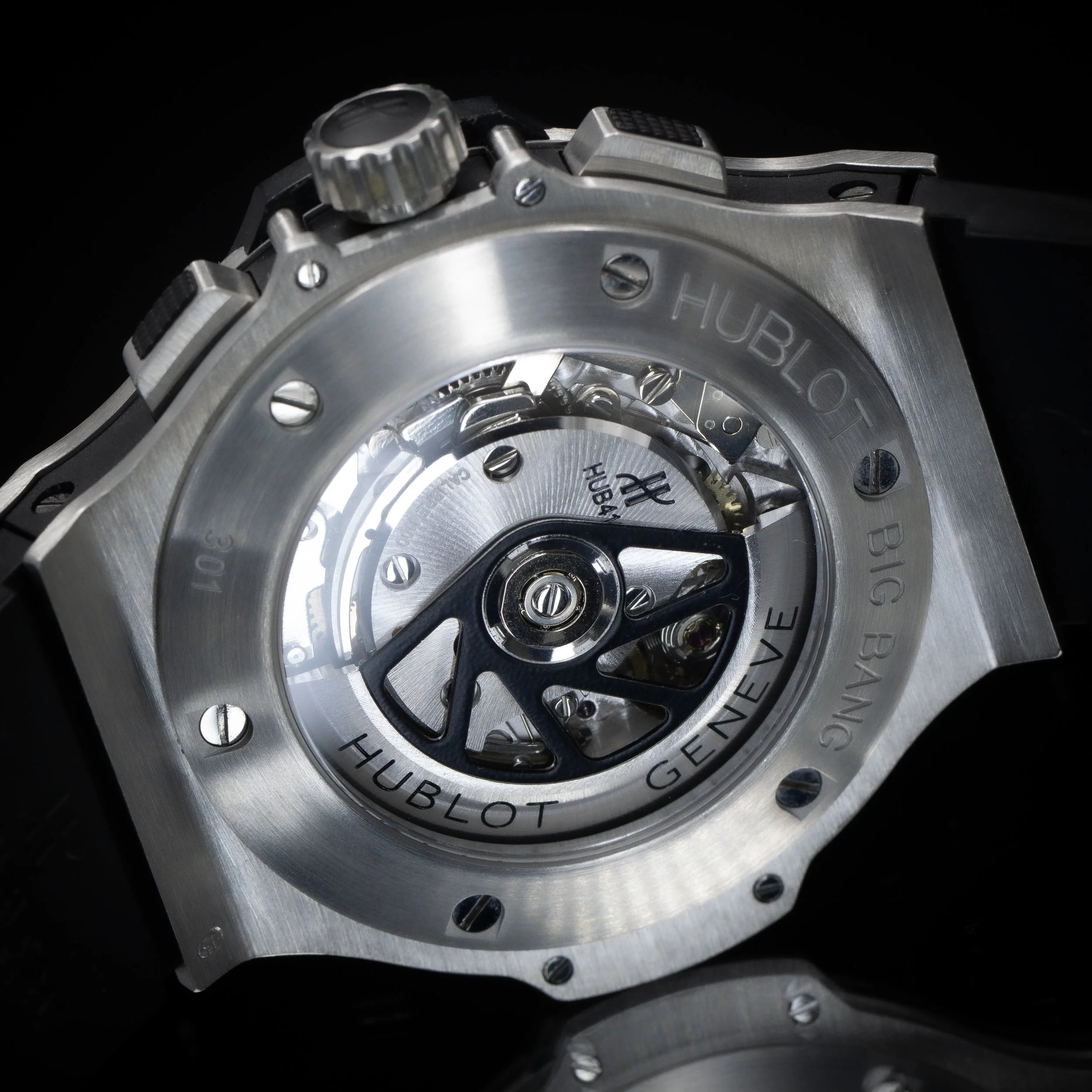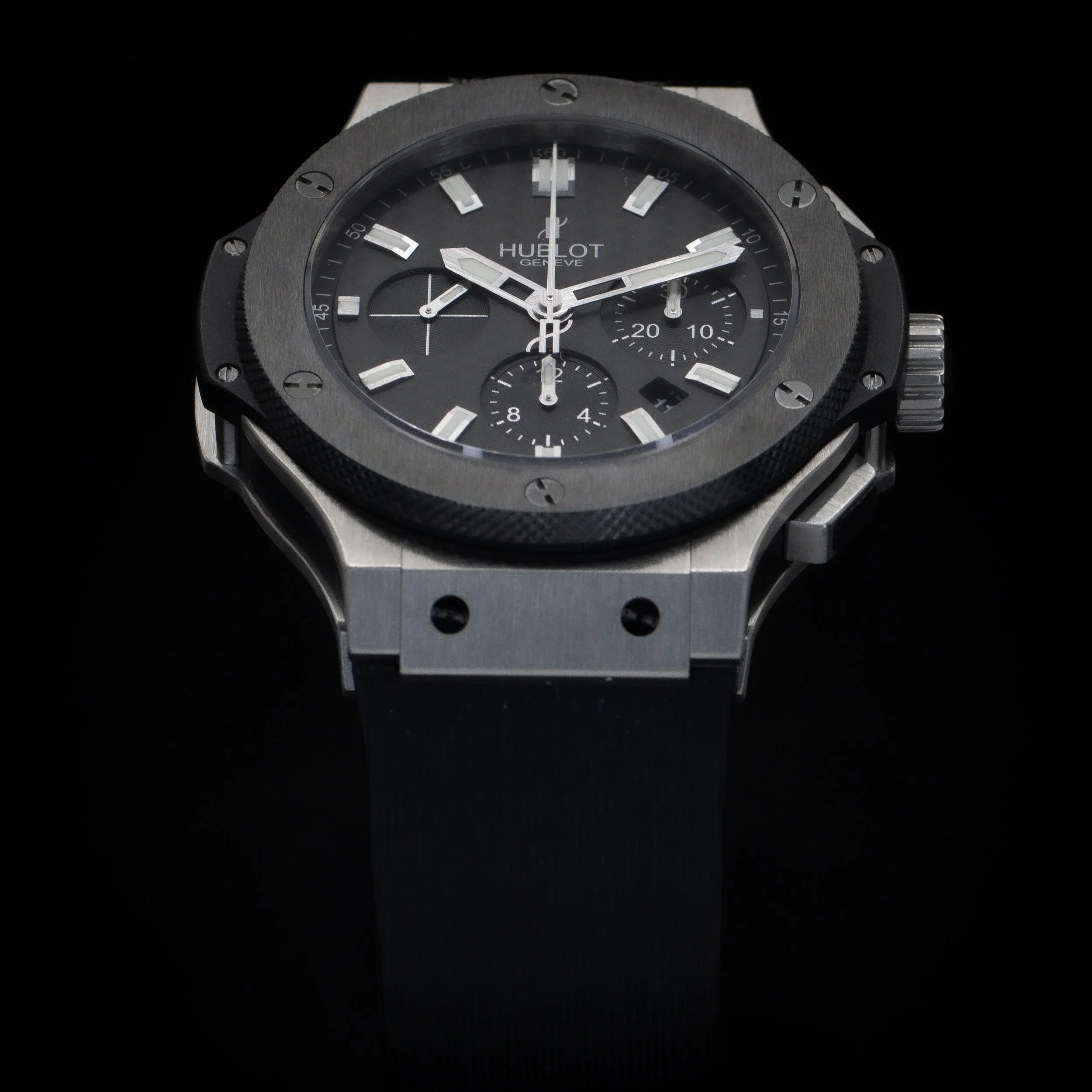 Hublot Categories: All Audemars Piguet Blancpain Breitling Cartier Chopard Chronoswiss Grand Seiko Franck Muller Girard-Perregaux H. Moser & Cie. Hublot IWC Jaeger-LeCoultre Lady's Timepieces MB&F Omega Panerai Patek Philippe Rolex Thomas Ninchritz Tudor Ulysse Nardin Vacheron Constantin All / All Audemars Piguet Blancpain Breitling Cartier Chopard Chronoswiss Grand Seiko Franck Muller Girard-Perregaux H. Moser & Cie. Hublot IWC Jaeger-LeCoultre Lady's Timepieces MB&F Omega Panerai Patek Philippe Rolex Thomas Ninchritz Tudor Ulysse Nardin Vacheron Constantin HUBLOT Big Bang 44 | Ref. 301.SM.1770.RX | Full Set $6,795.00 HUBLOT Spirit of Big Bang White Ceramic 42 | Ref. 642.HX.0170.RX | Fresh-Date Full Set $23,495.00 Available Upon Request HUBLOT Spirit of Big Bang 45 “Vampire” | Titanium | Ref. 601.NM.0173.LR | Full Set $16,995.00 Available Upon Request HUBLOT Spirit of Big Bang Chronograph Titanium Skeleton Dial, Ref. 641.NX.7170.LR, Complete Set. $14,895.00 Available Upon Request HUBLOT Big Bang Sang Bleu White, Limited to 200 Pieces, Ref. 415.NX.2027.VR.MXM18, Full Set $13,495.00 Available Upon Request HUBLOT Big Bang 41mm White Ceramic “Aspen”, Ref. 342.SE.230.RW, Complete Set with Extra Straps $7,895.00 Available Upon Request HUBLOT Classic Fusion Chronograph Berluti “Cold Crown” 45, Limited to 200 Pieces, Ref. 521.NX.051B.VR.BER19, Complete Collectors Set $10,995.00 Available Upon Request HUBLOT Big Bang Unico Blue Sapphire, Ref. 411.JL.4809.RT, Limited Edition, Full Set $37,995.00 Available Upon Request