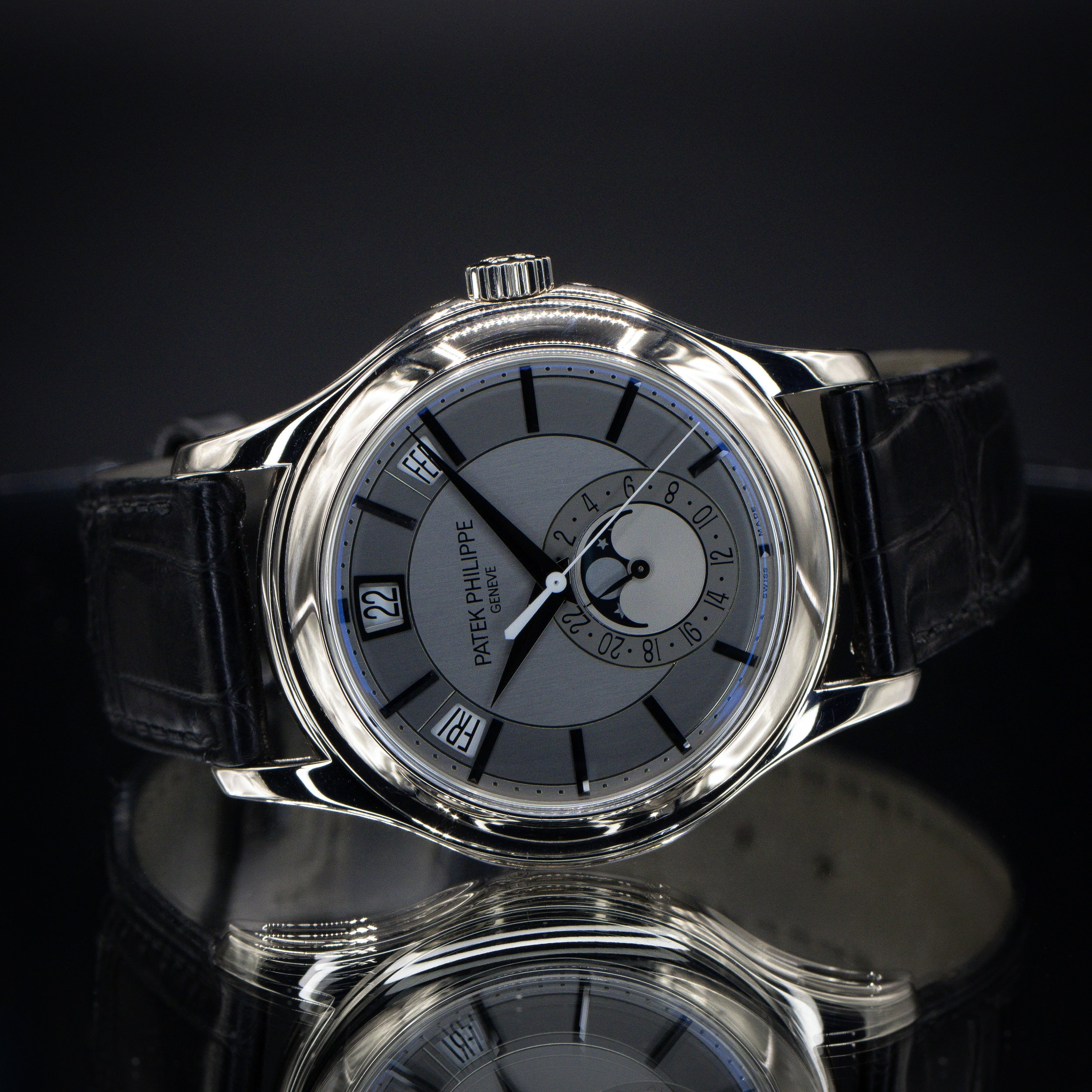 Patek Philippe Categories: All Audemars Piguet Blancpain Breitling Cartier Chopard Chronoswiss Grand Seiko Franck Muller Girard-Perregaux H. Moser & Cie. Hublot IWC Jaeger-LeCoultre Lady's Timepieces MB&F Omega Panerai Patek Philippe Rolex Thomas Ninchritz Tudor Ulysse Nardin Vacheron Constantin All / All Audemars Piguet Blancpain Breitling Cartier Chopard Chronoswiss Grand Seiko Franck Muller Girard-Perregaux H. Moser & Cie. Hublot IWC Jaeger-LeCoultre Lady's Timepieces MB&F Omega Panerai Patek Philippe Rolex Thomas Ninchritz Tudor Ulysse Nardin Vacheron Constantin PATEK PHILIPPE Gondolo Platinum | Ref. 5111PR-001 | Full Set with Two Buckle Options | Single Owner $27,995.00 PATEK PHILIPPE Annual Calendar Moonphase “Soleil Vert” | Rose Gold | Ref. 5205R-011 | Full Set $62,995.00 Available Upon Request PATEK PHILIPPE Grand Complications In-Line Perpetual Calendar Platinum Blue 41.3mm | Ref. 5236P-001 | Full Set $95,995.00 Available Upon Request PATEK PHILIPPE Annual Calendar | Gray Dial | Ref. 5205G-001 | Full Set $39,995.00 Available Upon Request PATEK PHILIPPE Nautilus 5726A-001 | Steel 40 | Charcoal Gray Dial | 2 Extra Straps | Full Set $86,995.00 Available Upon Request PATEK PHILIPPE Annual Calendar 38, Satiné Blue Dial, Steel Bracelet, Ref. 4947/1A-001, Complete Set $39,495.00 Available Upon Request